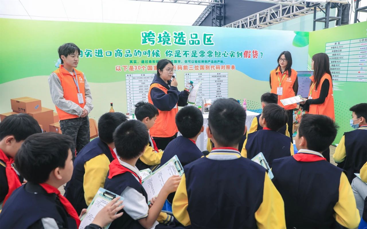 现场体验环节中,孩子们化身“小小全球贸易家”,通过紧密衔接的选品、物流、直播挑战,感受跨境电商行业的智慧与乐趣。