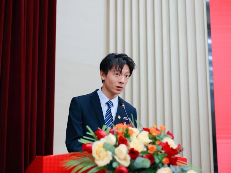 浙江经济职业技术学院学生会执行主席周浩天代表兄弟院校致辞。他提到育英学院治学严谨、传统优良,培养众多优秀人才,此次学代会意义重大。希望一直与育英密切合作、优势互补,推动创新发展。展望未来,期待深化合作,应对挑战机遇,加强思想引领、深化服务内涵、加强组织建设。