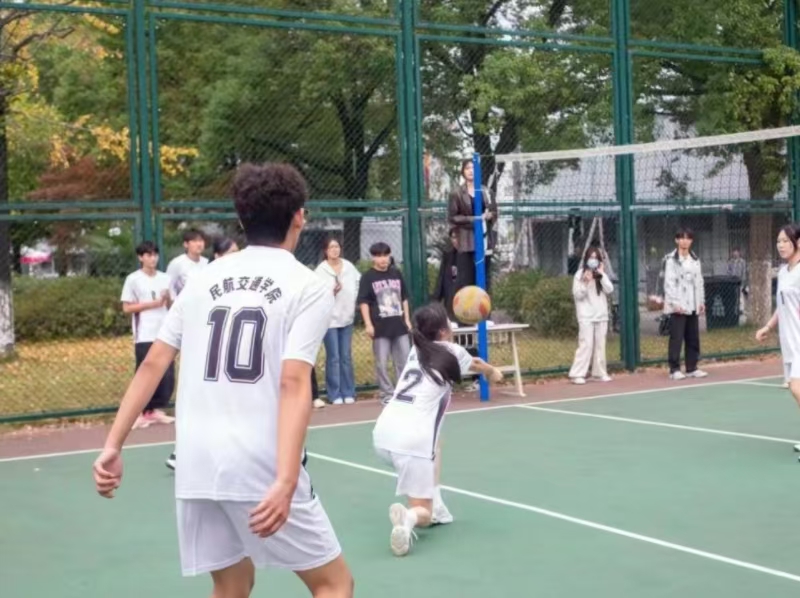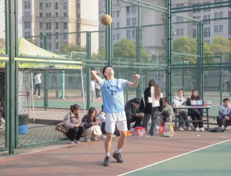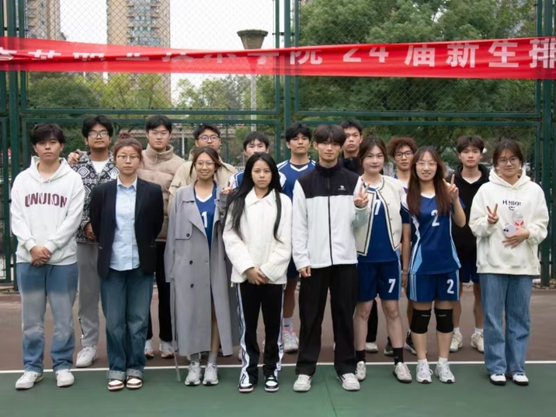 球赛未始,热血已沸。空气中弥漫着新生的活力,无畏与勇敢在每一位队员身上闪耀。排球赛不仅是竞技场,更是新生们展示自我、释放激情的舞台。