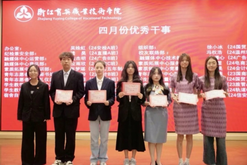 由校团委办公室主任施景源为他们颁奖,在过去的一个月里,他们以高度的责任感和饱满的热情投入工作,用实际行动诠释着担当与奉献。