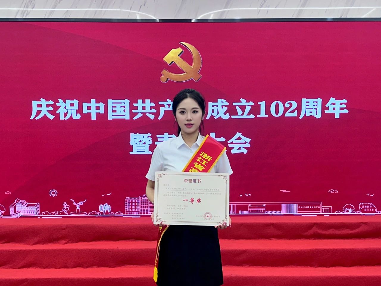 面对全新的课程体系,凭借热爱与坚持,全身心投入学习,她争分夺秒,利用碎片时间补修大一课程,专业成绩从第九名跃升至稳居第一,连续三学期综合测评位居专业榜首,先后获得国家奖学金、浙江省政府奖学金、学校优秀学生一等奖学金等多项奖项和荣誉。
