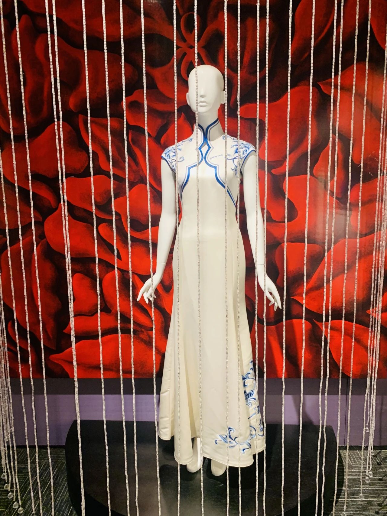实物陈列区成为最鲜活的职业素养课堂。馆藏清代康熙、乾隆龙袍复刻品引发热烈关注,讲解员细致解读金线刺绣工艺与十二章纹皇权象征,同学们驻足观察云纹、海水江崖等纹样细节,直观感受传统织造技艺的巅峰水准。展区特别设置的“丝绸外交”专题,通过2008年奥运会青花瓷礼服、世博会七彩丝巾等展品,生动展现了万事利丝绸文化在国际舞台上的高光时刻。