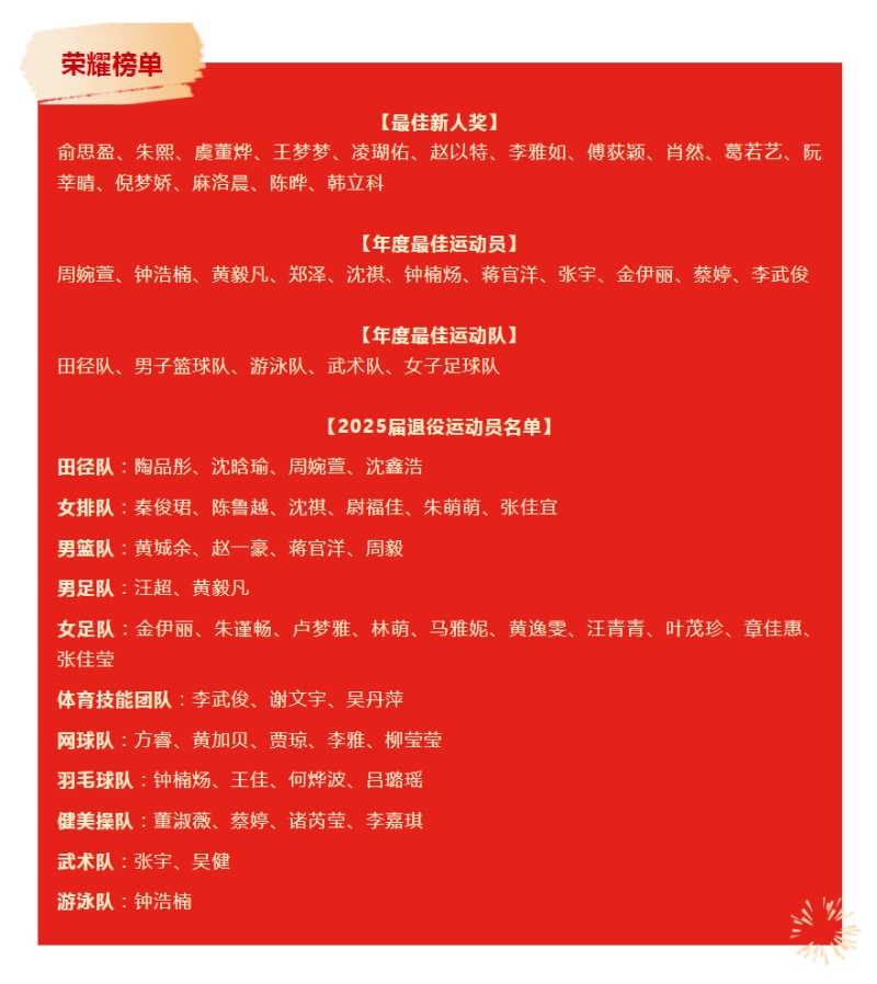 汤剑辉深情寄语:“感恩成长,你们用汗水书写育英体育辉煌;传承榜样,你们的精神将永远激励后来者;未来期许,愿你们在人生新赛道上,继续做自己的冠军。”