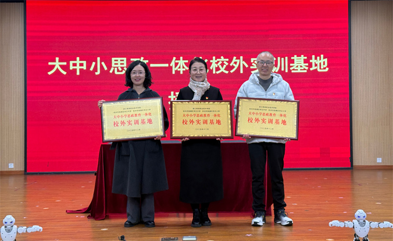 谢鑫与吴顺良、张鑫凤共同为思政教育一体化校外实训基地签约授牌。