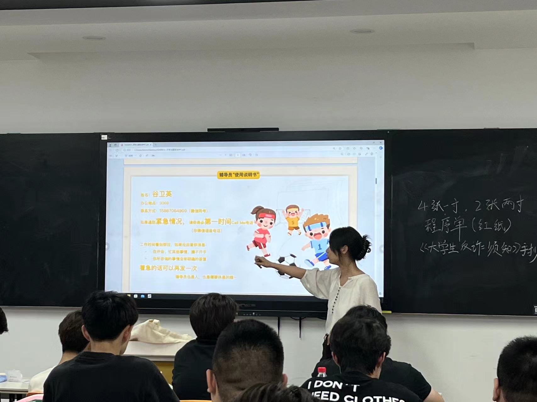 辅导员老师更是以高度的责任感和使命感,围绕新生适应性教育这一核心,深入浅出地讲解了如何快速融入大学生活、建立良好的人际关系;同时,通过生动的案例和详实的校纪校规解读,强化了新生的规则意识与自律精神;在安全教育环节,更是细致入微,确保每位新生都能掌握基本的安全知识与自我防护技能,为他们的大学之旅保驾护航。