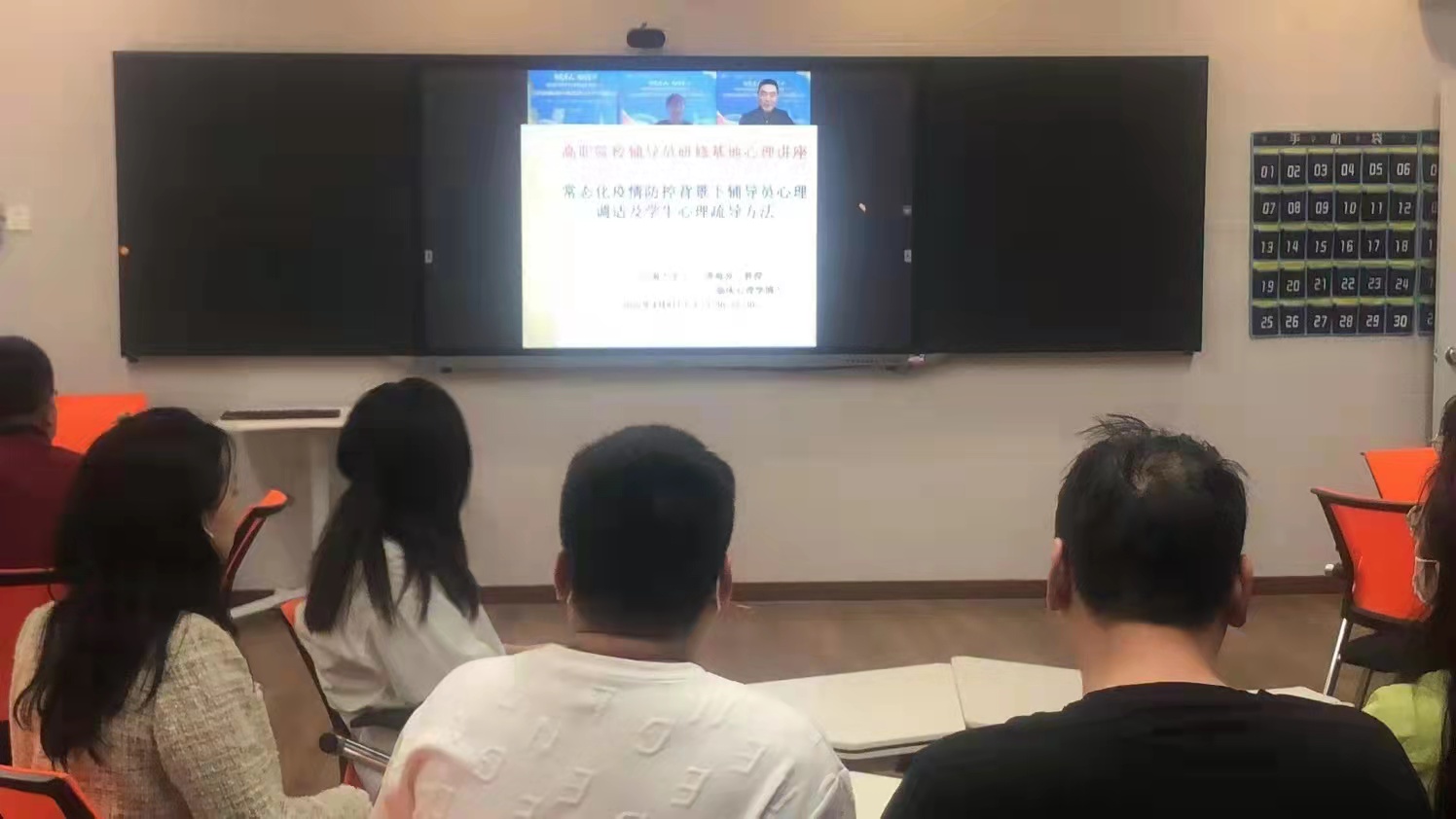 为提升辅导员在疫情防控中开展学生心理工作的能力,中南大学心理健康教育与咨询专家、临床心理学博士、注册心理督导师唐海波教授应邀以线上直播形式,作了“疫情防控背景下辅导员学生心理调适及心理筑导方法”专题辅导讲座。2022年4月8日下午13.30-15:30,商贸分院组织德育教研室和实践教研室的全体教师观看线上直播讲座。