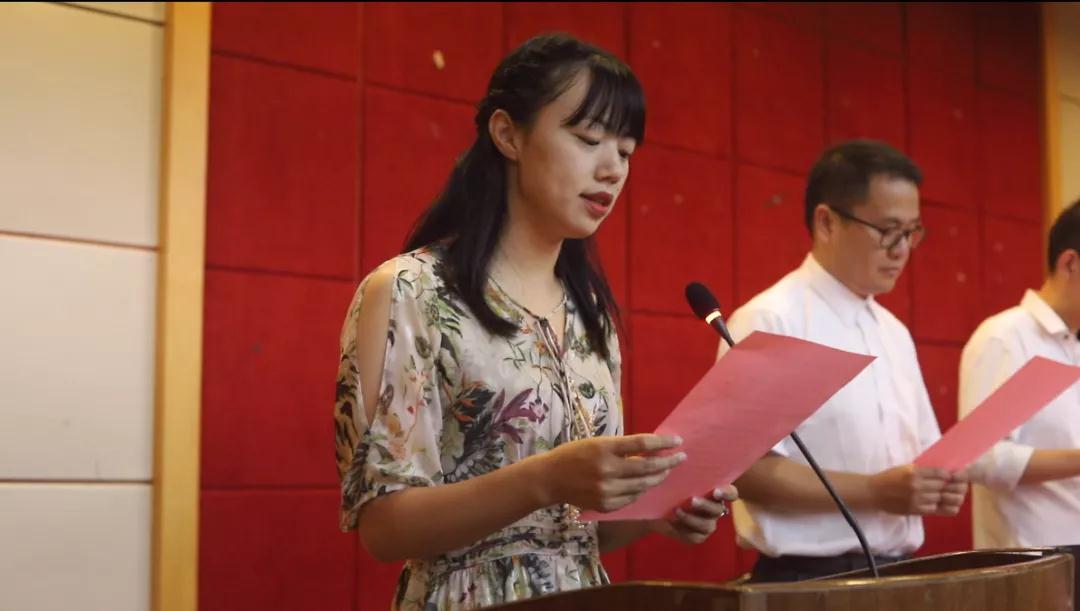 奏唱国歌之后,德育教研室辅导员沈文青老师带领全体师生诵读校训。作为育英学子,我们应该牢记“厚德载物、自强不息”的校训,领悟中华民族传统文化的精神,勤奋努力、开拓进取。