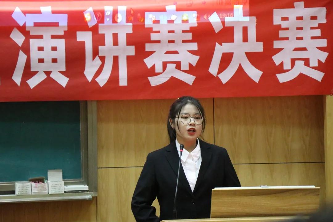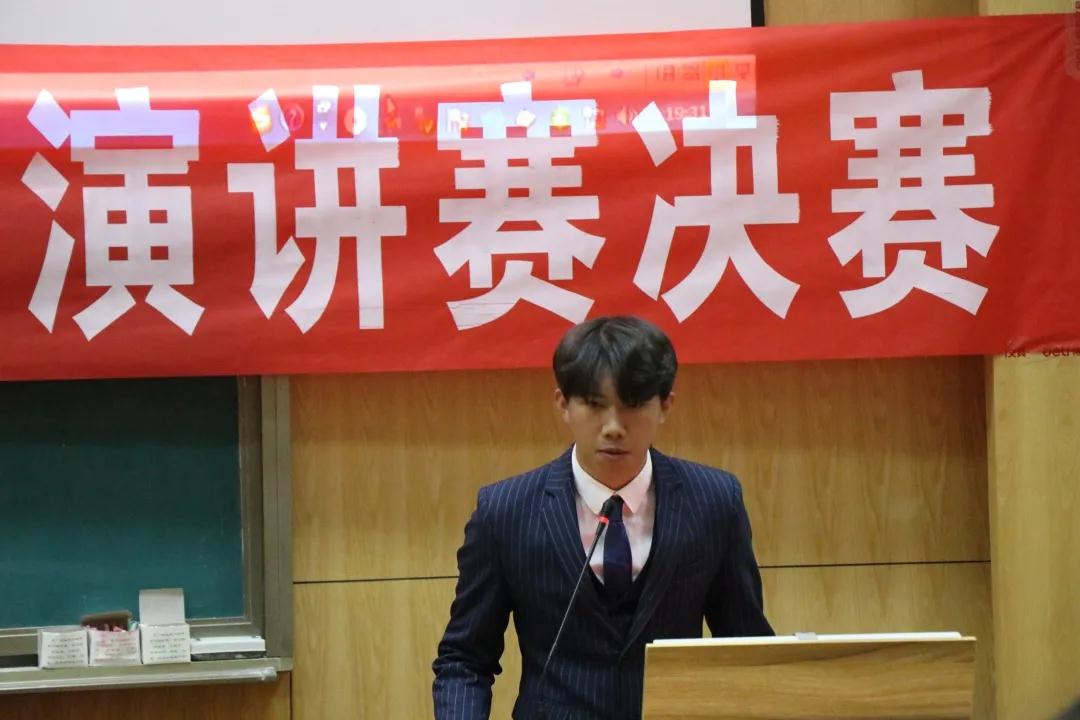 在激烈的第一轮竞争中,胡雨晨同学时而激昂高亢,时而低沉吟颂,讲述了自己作为新时代青年,要背起行囊,用脚步丈量青春,承担时代使命,“拥抱新时代,迈向新征程,为实现中华民族伟大复兴的中国梦而不懈奋斗。”其精彩的演讲将比赛推向高潮,赢得评委和观众的一致好评。