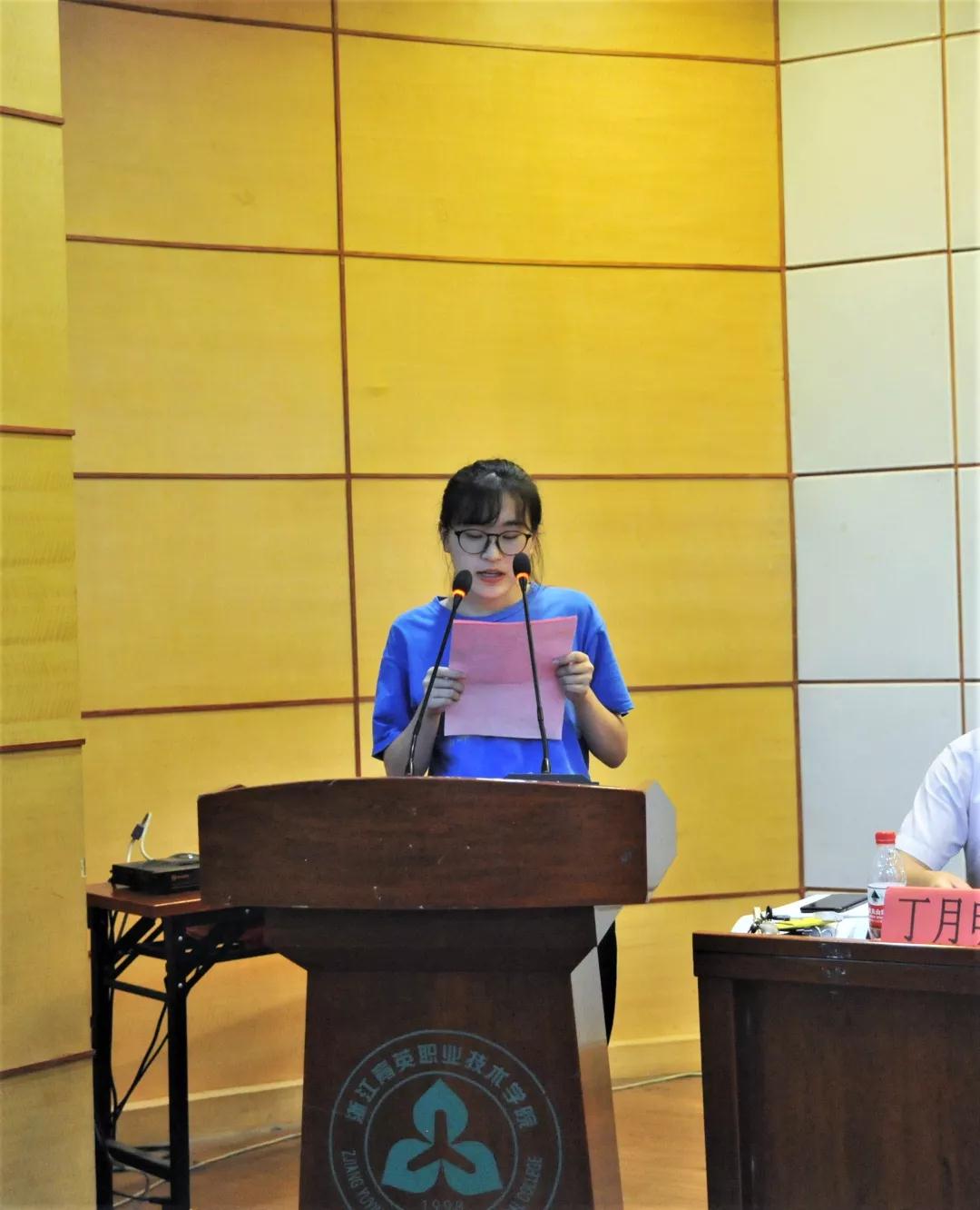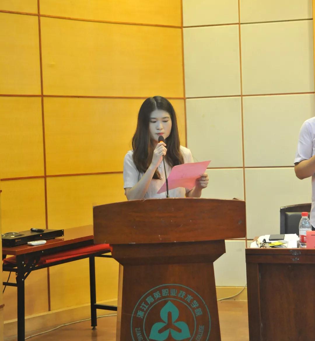 在全体新生观看过商贸分院宣传片后,分别由教师代表王成伟老师、杨昕老师,老生代表商贸分院学生会主席周楚慧同学及2019级新生代表陈震宇、李玉琪同学发言。