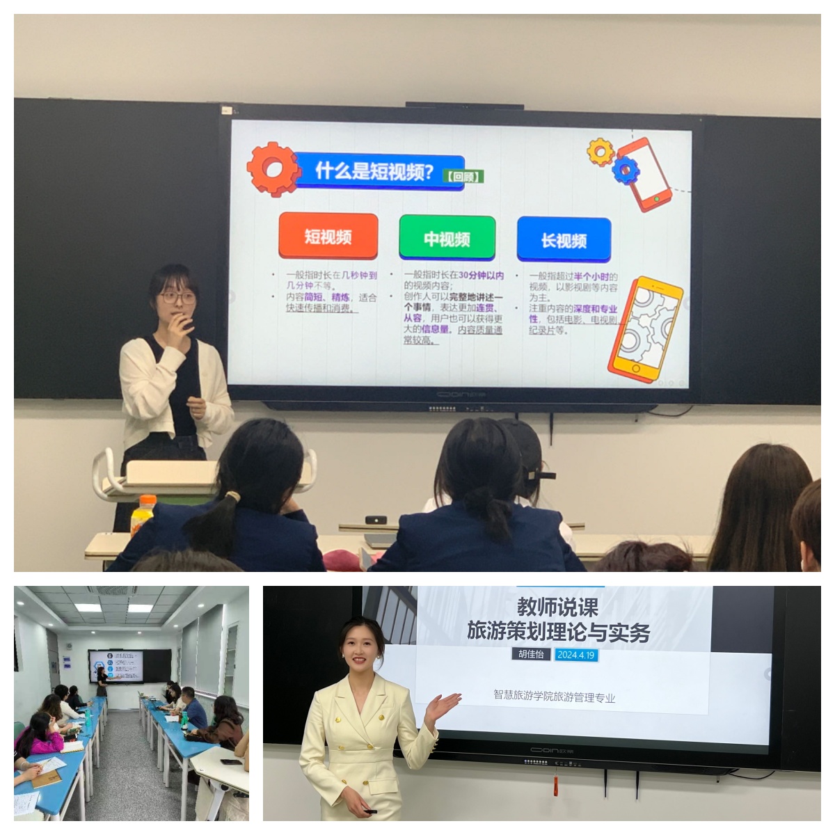 4月19日下午,旅游管理专业新教师胡佳怡老师围绕《旅游策划理论与实务》课程,展开了一场全面而深入的说课展示,并于4月24日下午,针对“民俗旅游活动创意策划”内容进行公开课展示,星空彩票体育app平台院长黄华、副院长周岚、学校督导杜红文、学院督导及专业负责人悉数到场参加,给予了针对性的指导建议。