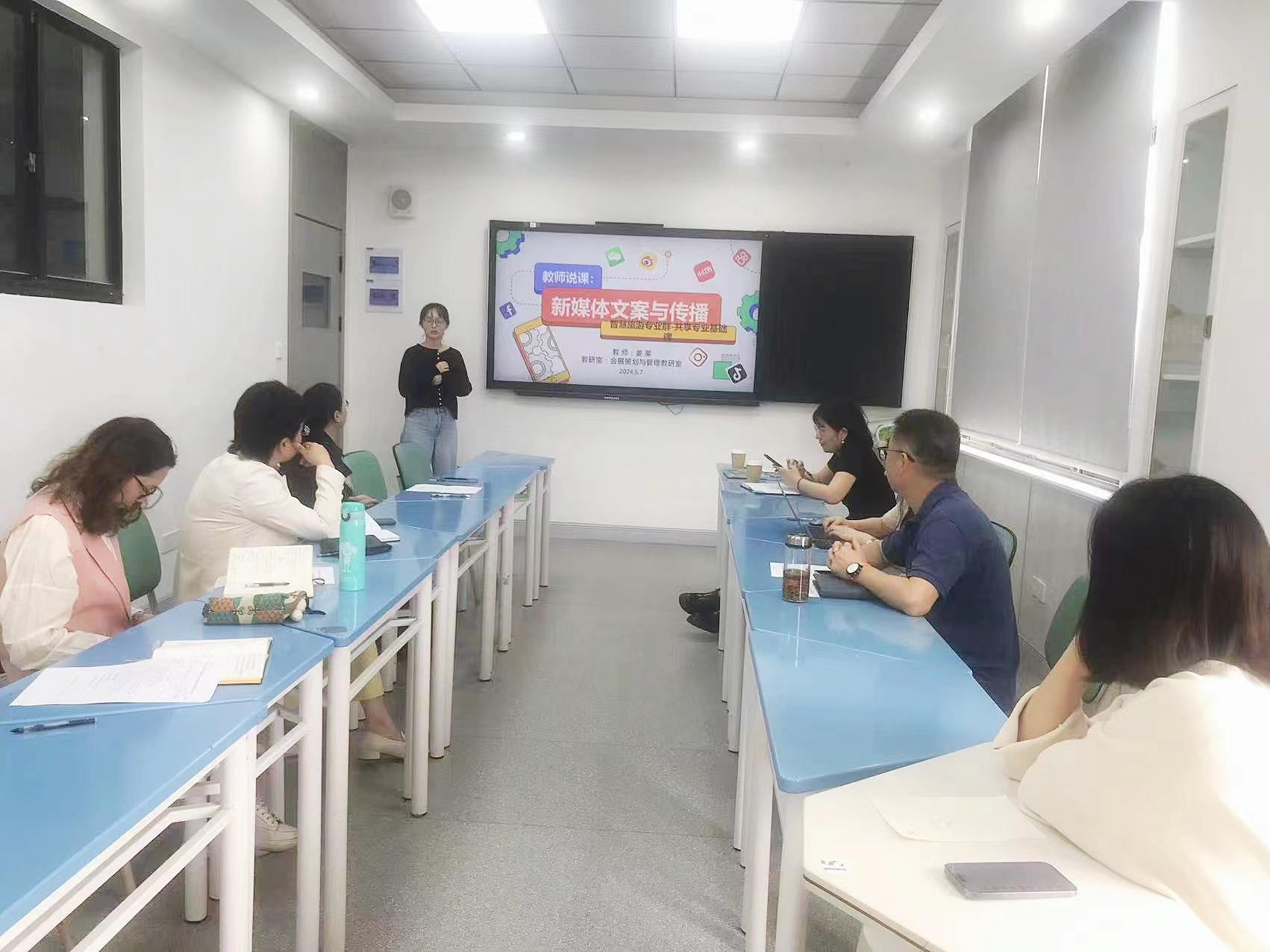 周岚副院长则表示,两位老师的说课内容与形式各有特色,其中,李京烨老师的说课内容可以结合更多实际教学案例,丰富说课展示的内容支撑;姜莱老师在说课中展示的课程内容设计,可更多结合旅游管理专业实际,提升专业基础课与学生实际专业的衔接度。