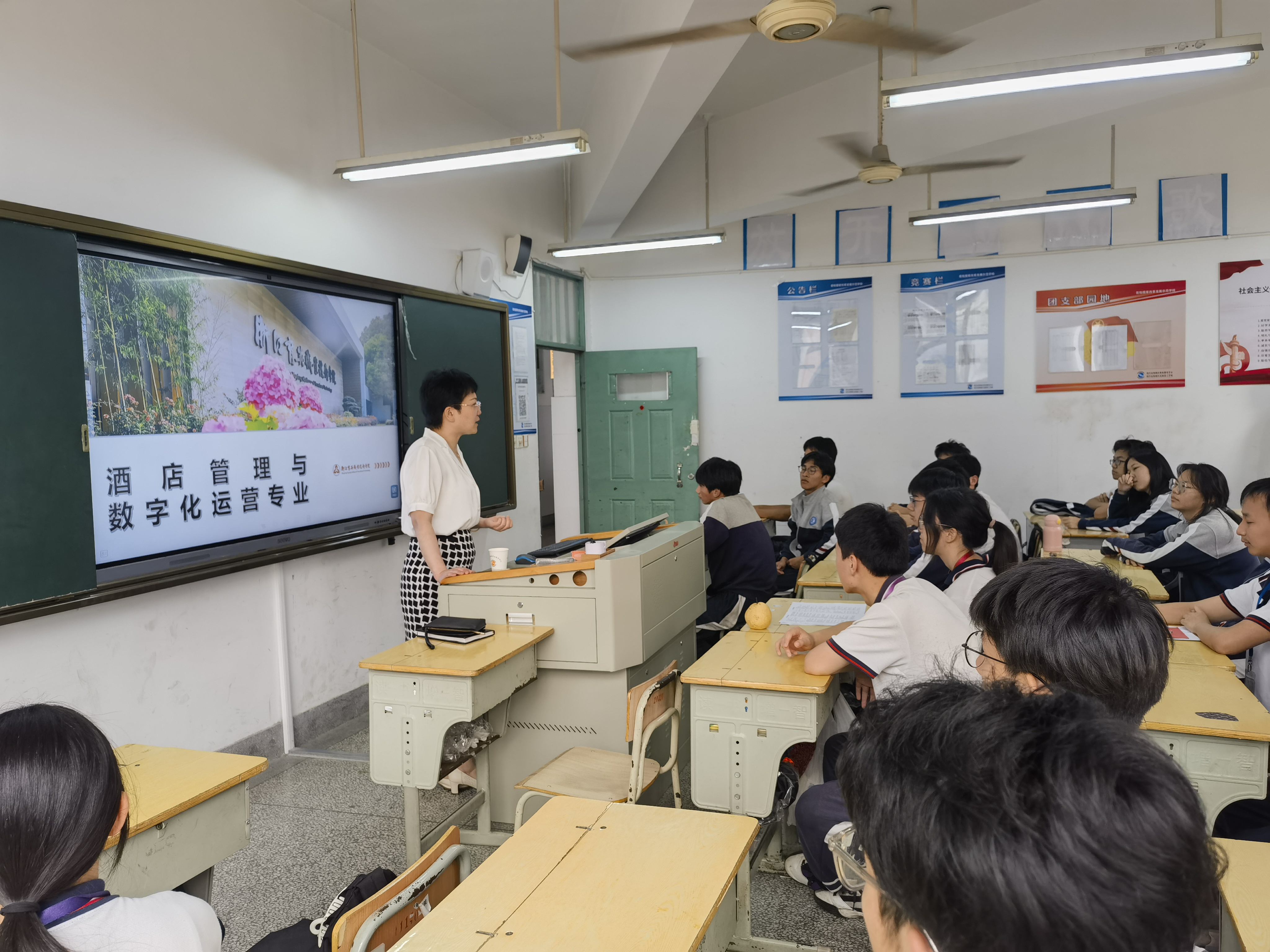 周院长为两个学校的高一学子都做了热情洋溢的专业介绍,同学们听得非常认真,对两年后的大学生活充满了向往,纷纷表示要努力学习,在高中打好基础。与两所学校的领导、专业老师也做了会谈,双方交流了专业建设的方向、教学内容的革新、提高技能人才培养质量等问题,希望能够互相帮助,共同提高,双方都有很多教学管理方面的经验和做法值得深入学习借鉴。这次的走访交流是个开始,我们以后会继续保持紧密联系。