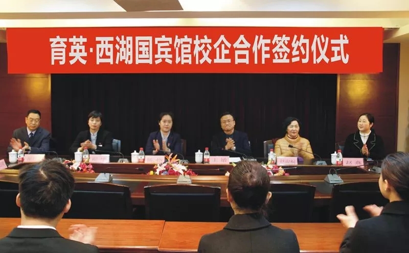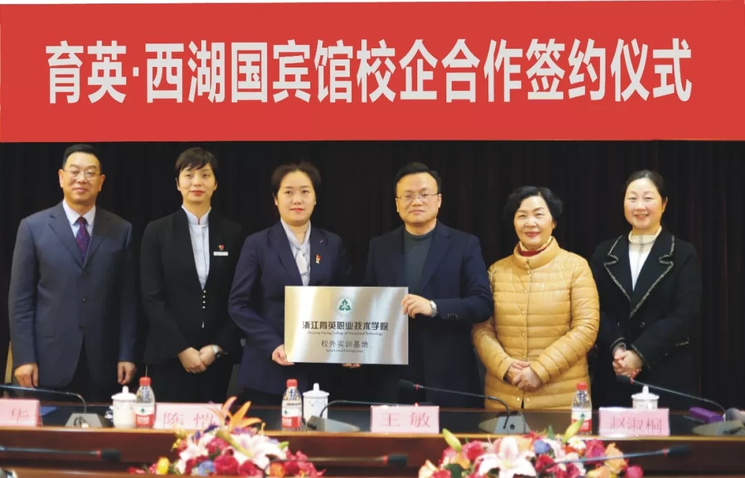 2019年12月19日上午,浙江育英职业技术学院与杭州西湖国宾馆签约仪式在学院十楼会议室举行,学院副院长王敏和杭州西湖国宾馆人力资源部经理陈恺分别代表校企双方领导签署校企战略合作协议并授牌。校企双方决定在人才培养、员工培训、社会服务等方面实施全面深入的战略合作。