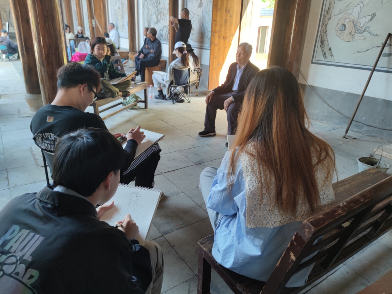 26名环境艺术设计专业的同学在专业老师们的带领下开展了“庆建党百年,绘党员风采,创意师生在行动”活动。活动在古色古香的阙氏宗祠里举行。在给老党员画肖像前,阙书记(村支部书记)介绍了各位老党员的基本情况及主要事迹。他们有些曾是村干部,为中国的乡村建设作出了不少贡献;有些曾参加过抗日战争,为赶走侵略者、保家卫国、取得抗日战争的胜利作出了巨大贡献。各位老党员也给各组同学们讲述了平凡而生动的故事。一个党员就是一面旗帜,老党员们立场坚定、艰苦朴素、不怕困难、不怕牺牲、无私奉献、一心为民等优秀品质深深感染着所有在场的师生们。大家对自己所要描绘的“党员”形象有了更深刻的理解。