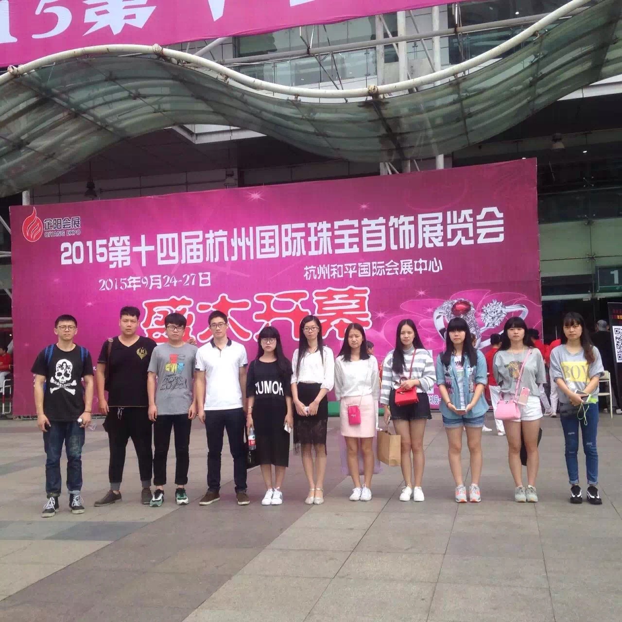 课堂内学习理论知识,课堂外是实践理论知识。展会现场就是会展策划与管理专业的学生的实训基地,14级会展A班、B班于924日到和平会展中心参加第十五届珠宝展的展会调研。