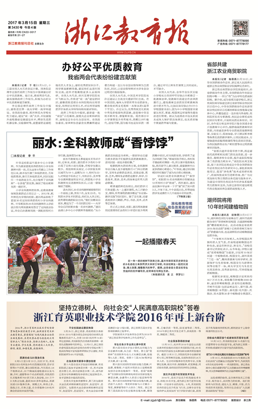 3月25日,中共浙江省委和浙江省人民政府联合表彰2014—2015年度全省社会治安综合治理先进集体和先进个人,全省120家(杭州市15家)单位受表彰,育英职院为全省教育系统惟一获得先进集体称号的单位。