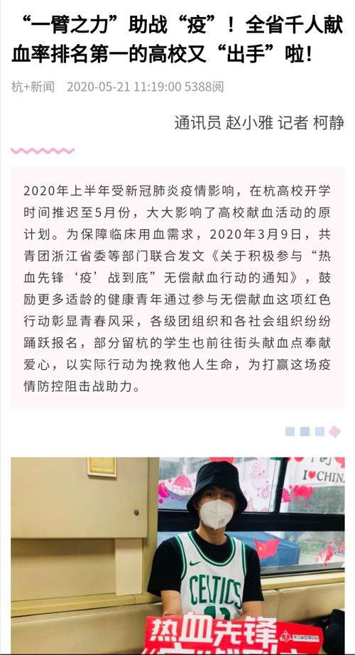 【杭+新闻】“一臂之力”助战“疫”!全省千人献血率排名第一的高校又“出手”啦!