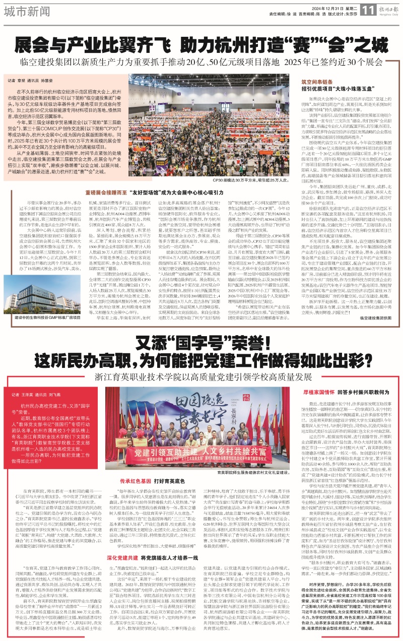 【杭州日报】浙江育英职业技术学院以高质量党建引领学校高质量发展