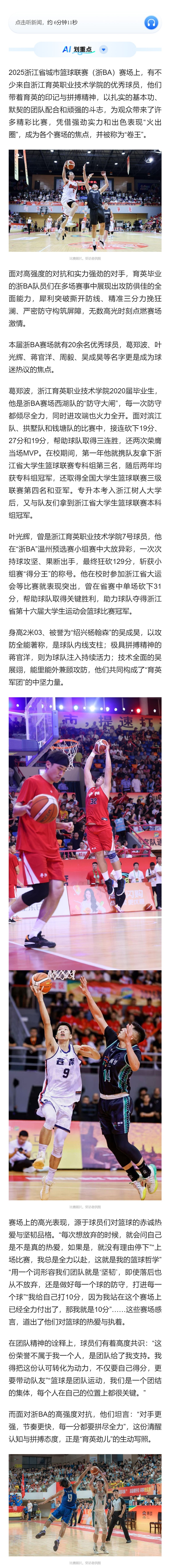 【潮新闻】火出圈!闪耀浙BA赛场的二十余名球员来自同一所高校
