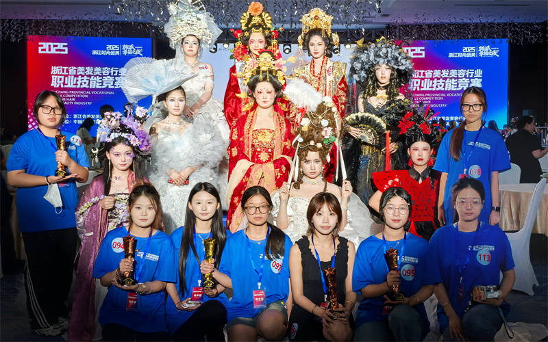 本次竞赛由浙江省商务厅、浙江省总工会联合主办,是全省美容美发领域的重要技能比拼平台,分美容、美发、美甲三大领域,涵盖化妆造型、发型设计、服饰搭配等核心模块,紧贴行业岗位需求。