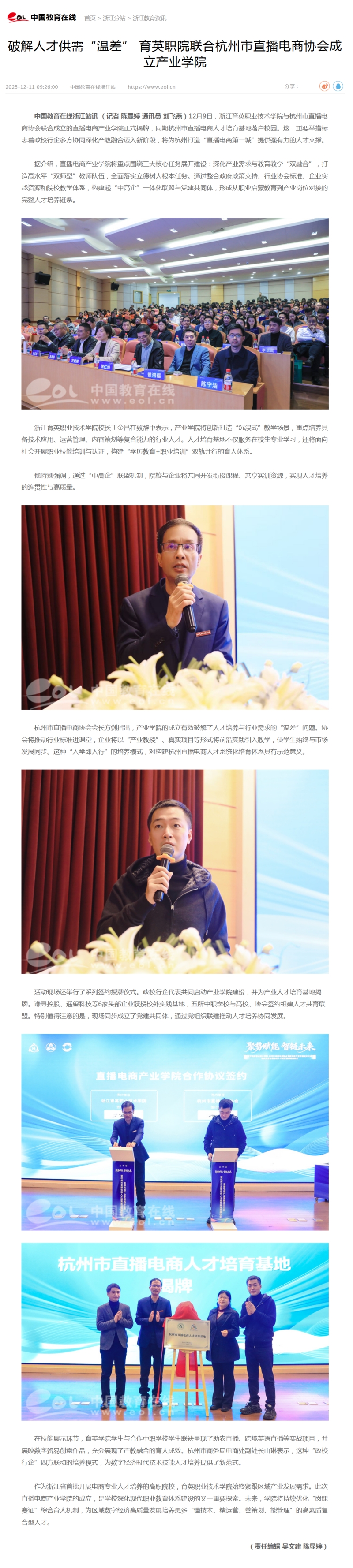 【星空国际游戏厅】破解人才供需“温差” 育英职院联合杭州市直播电商协会成立产业学院