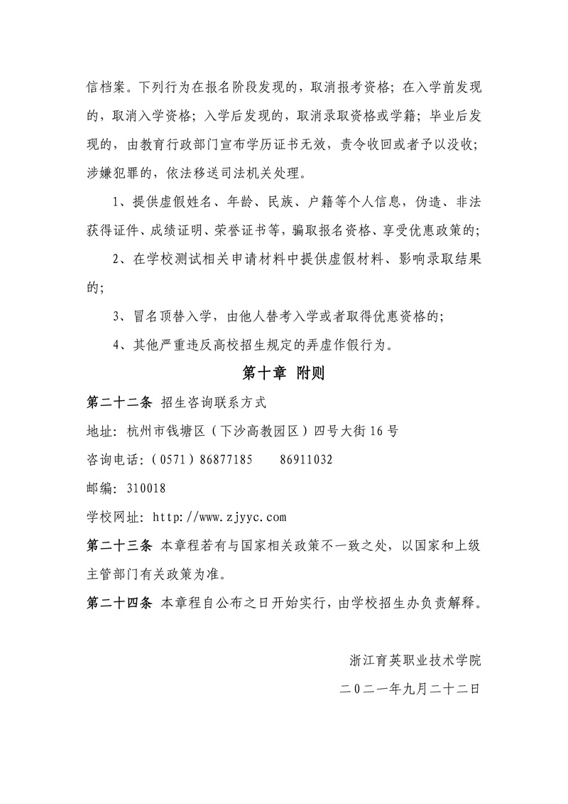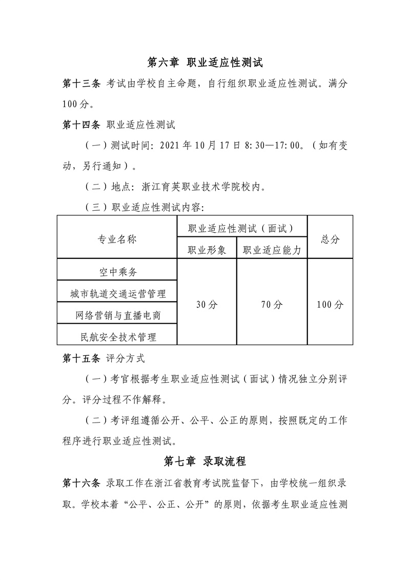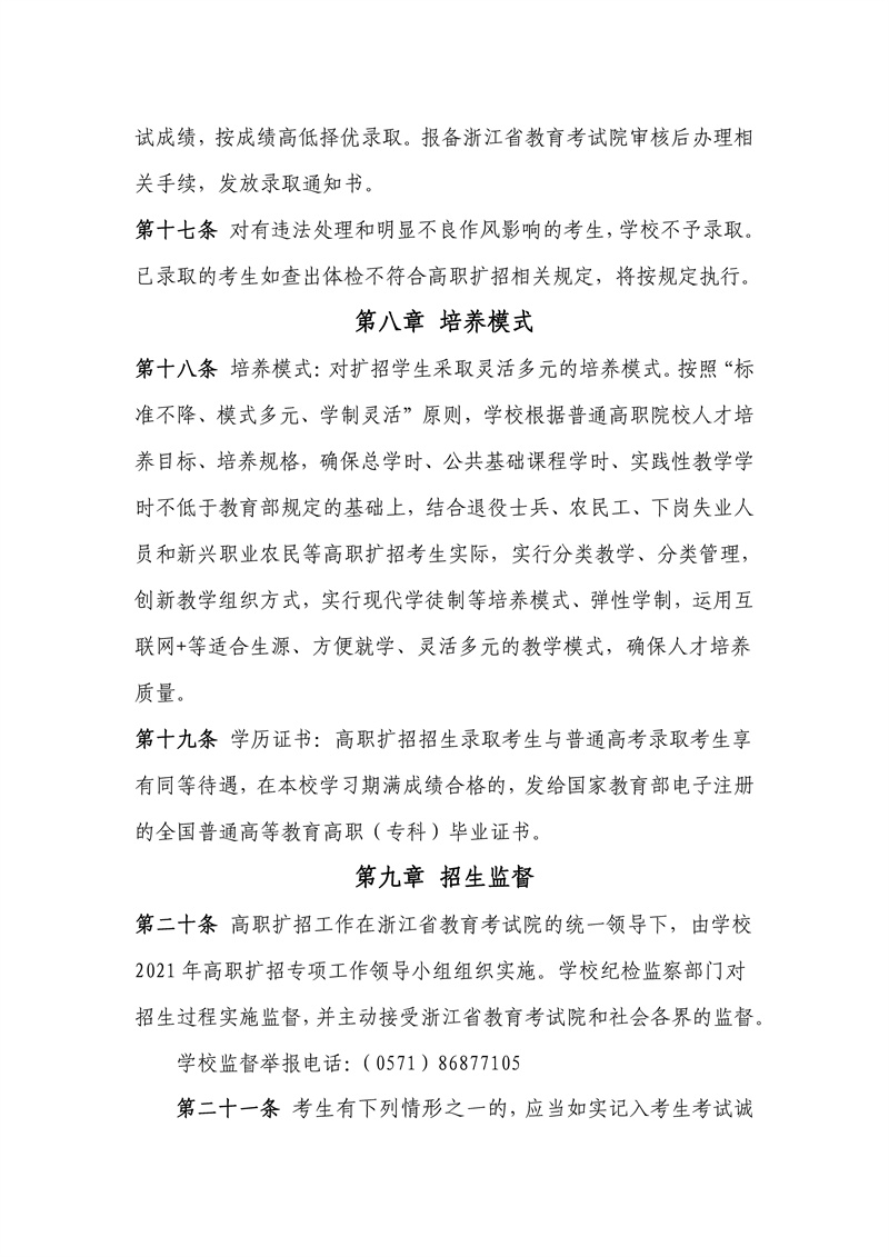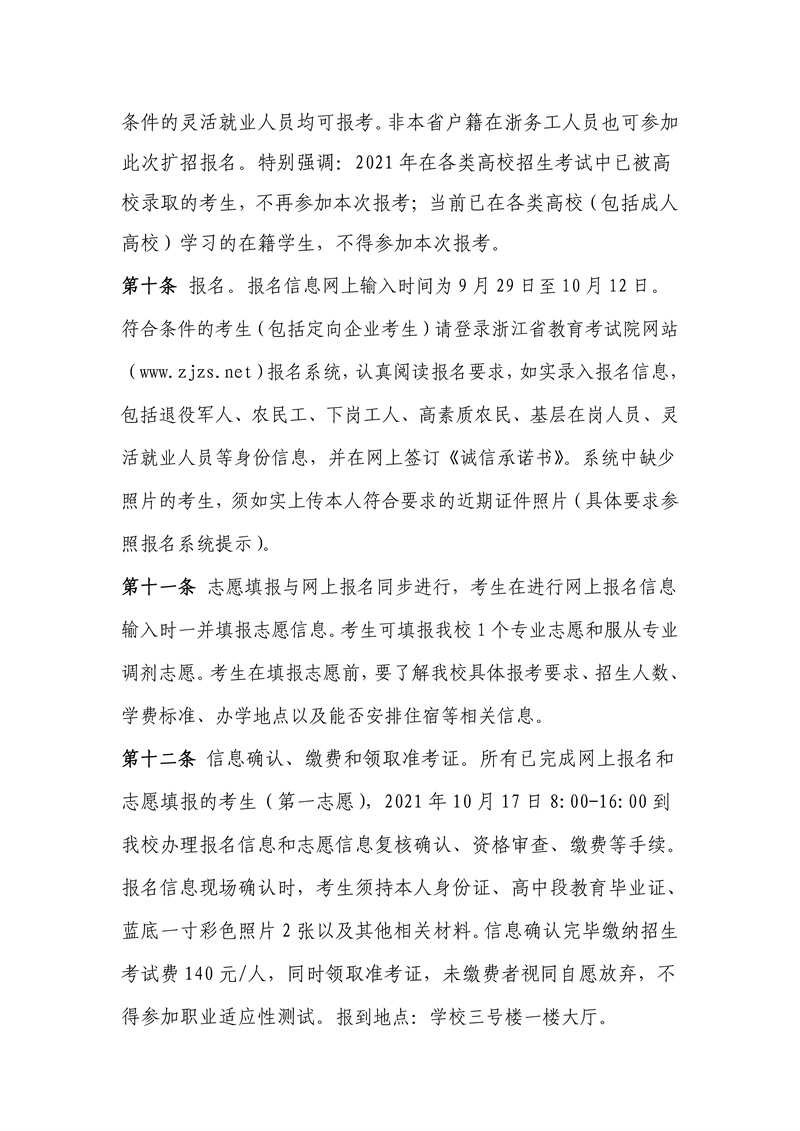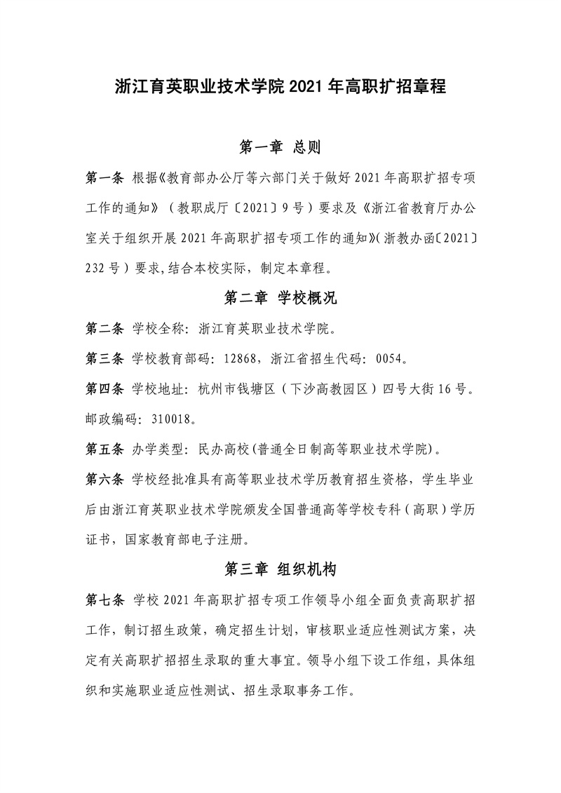 浙江育英职业技术学院2021年高职扩招章程