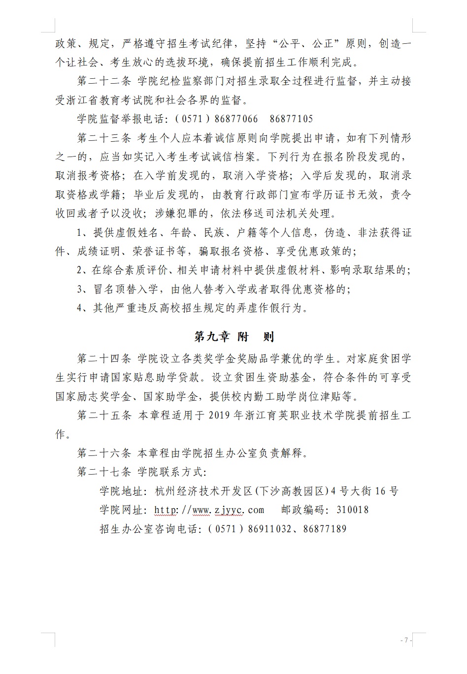 招生咨询 招生公告 报考指南 提前招生 历年分数 2025年招生专栏 录取查询 在线咨询 联系我们 地址:杭州市钱塘区4号大街16号 邮编:310018 电话:0571-86911032、86877189 报考指南 当前位置:首页 >> 招生咨询 >> 报考指南 我院2019年高职提前招生章程 时间:2019-02-21