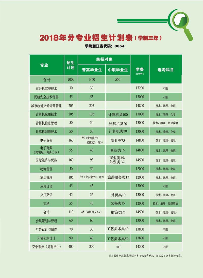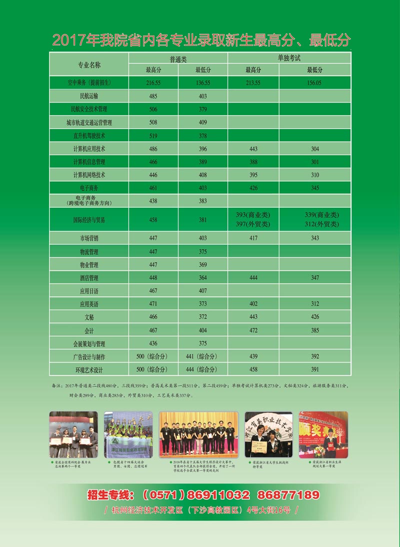 招生咨询 招生公告 报考指南 提前招生 历年分数 2025年招生专栏 录取查询 在线咨询 联系我们 地址:杭州市钱塘区4号大街16号 邮编:310018 电话:0571-86911032、86877189 报考指南 当前位置:首页 >> 招生咨询 >> 报考指南 2018年招生简章(彩页) 时间:2018-06-23