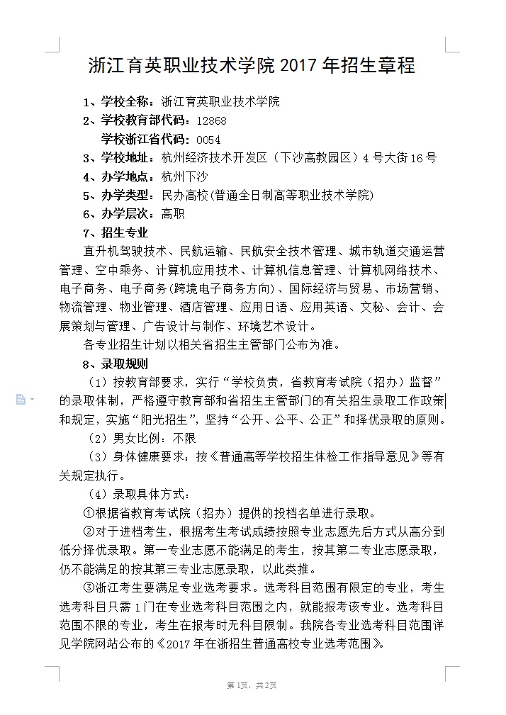 招生咨询 招生公告 报考指南 提前招生 历年分数 2025年招生专栏 录取查询 在线咨询 联系我们 地址:杭州市钱塘区4号大街16号 邮编:310018 电话:0571-86911032、86877189 报考指南 当前位置:首页 >> 招生咨询 >> 报考指南 我院2017年招生章程 时间:2017-06-20