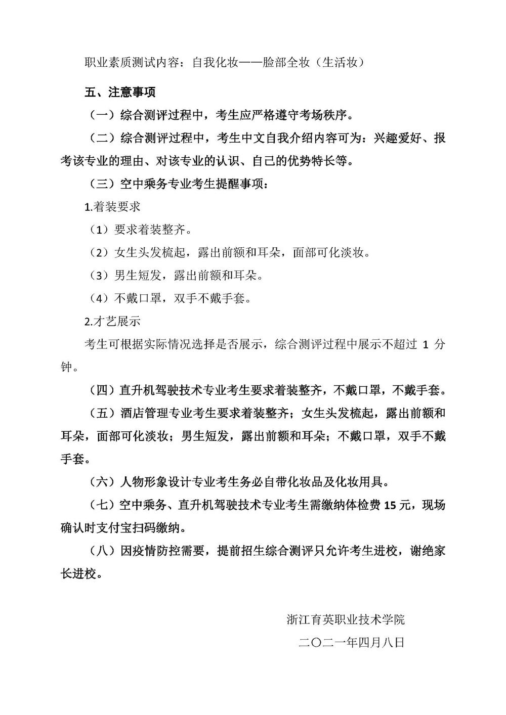 招生咨询 招生公告 报考指南 提前招生 历年分数 2025年招生专栏 录取查询 在线咨询 联系我们 地址:杭州市钱塘区4号大街16号 邮编:310018 电话:0571-86911032、86877189 招生公告 当前位置:首页 >> 招生咨询 >> 招生公告 浙江育英职业技术学院2021年高职提前招生综合测评事项说明 时间:2021-04-11