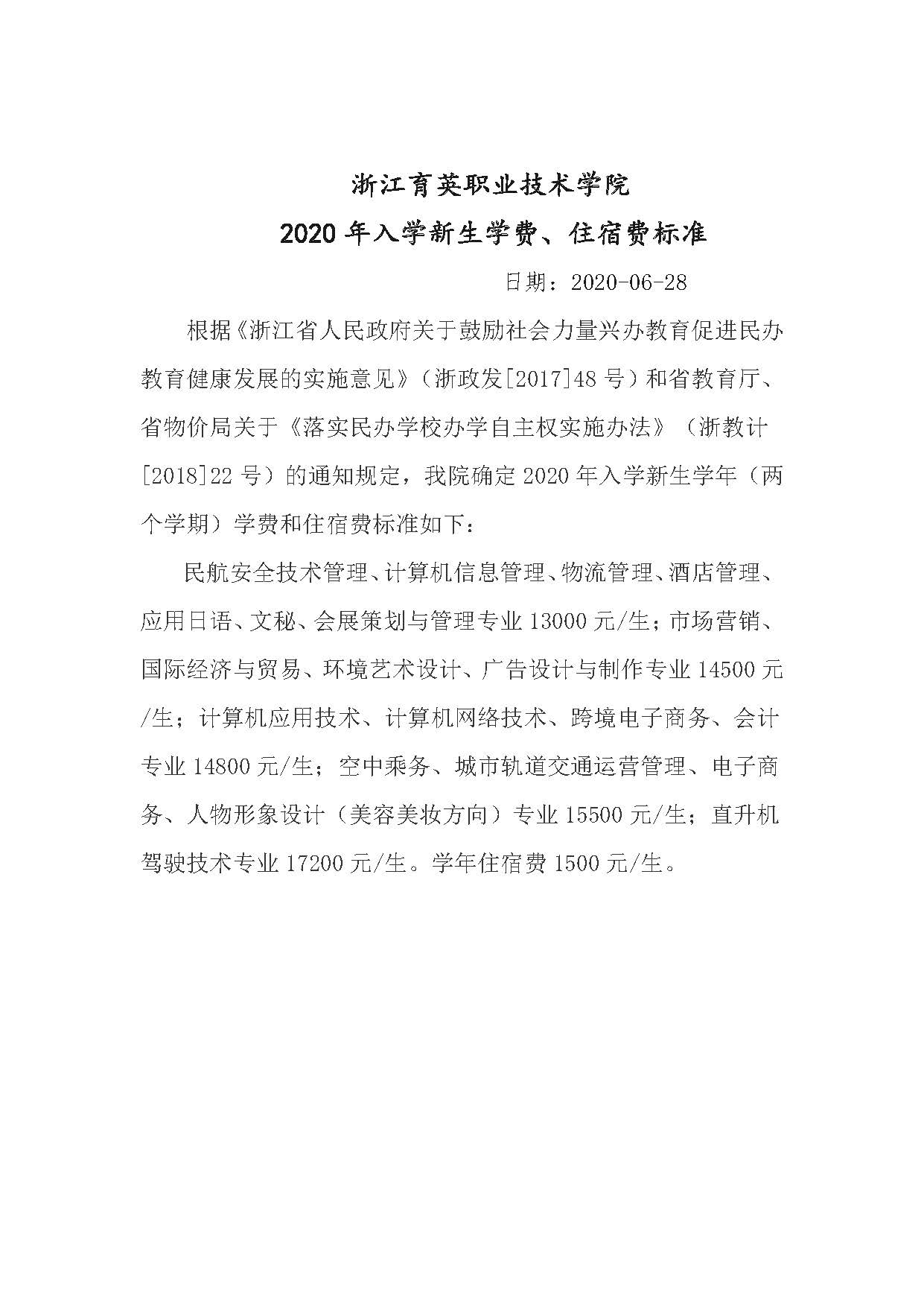 招生咨询 招生公告 报考指南 提前招生 历年分数 2025年招生专栏 录取查询 在线咨询 联系我们 地址:杭州市钱塘区4号大街16号 邮编:310018 电话:0571-86911032、86877189 招生公告 当前位置:首页 >> 招生咨询 >> 招生公告 浙江育英职业技术学院2020年入学新生学费、住宿费标准 时间:2020-06-29