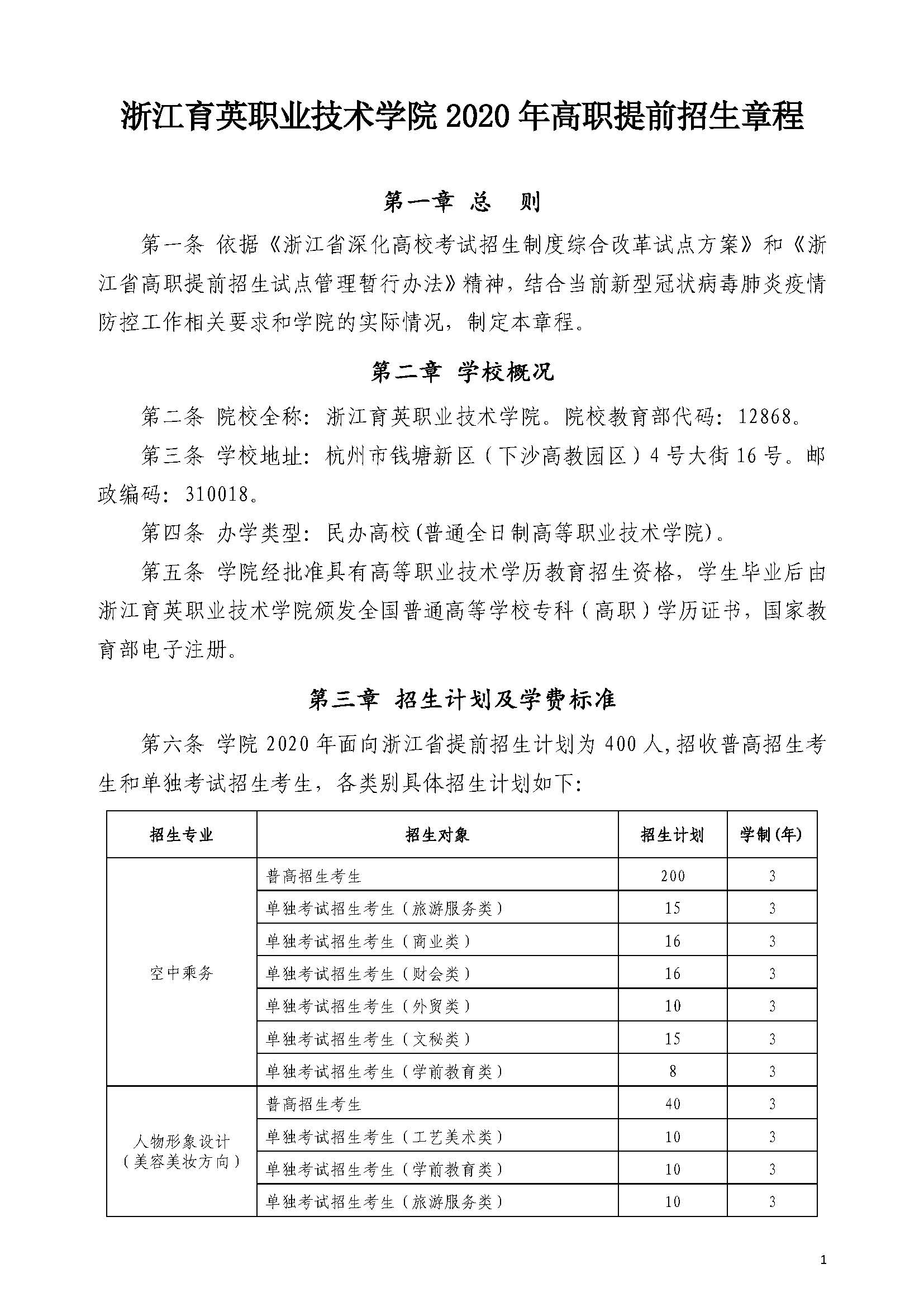 招生咨询 招生公告 报考指南 提前招生 历年分数 2025年招生专栏 录取查询 在线咨询 联系我们 地址:杭州市钱塘区4号大街16号 邮编:310018 电话:0571-86911032、86877189 招生公告 当前位置:首页 >> 招生咨询 >> 招生公告 浙江育英职业技术学院2020年高职提前招生章程 时间:2020-05-10