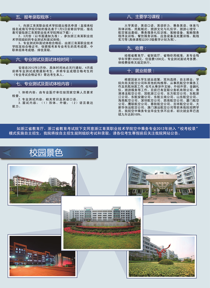 2012年空中乘务专业招生简章 (彩页)