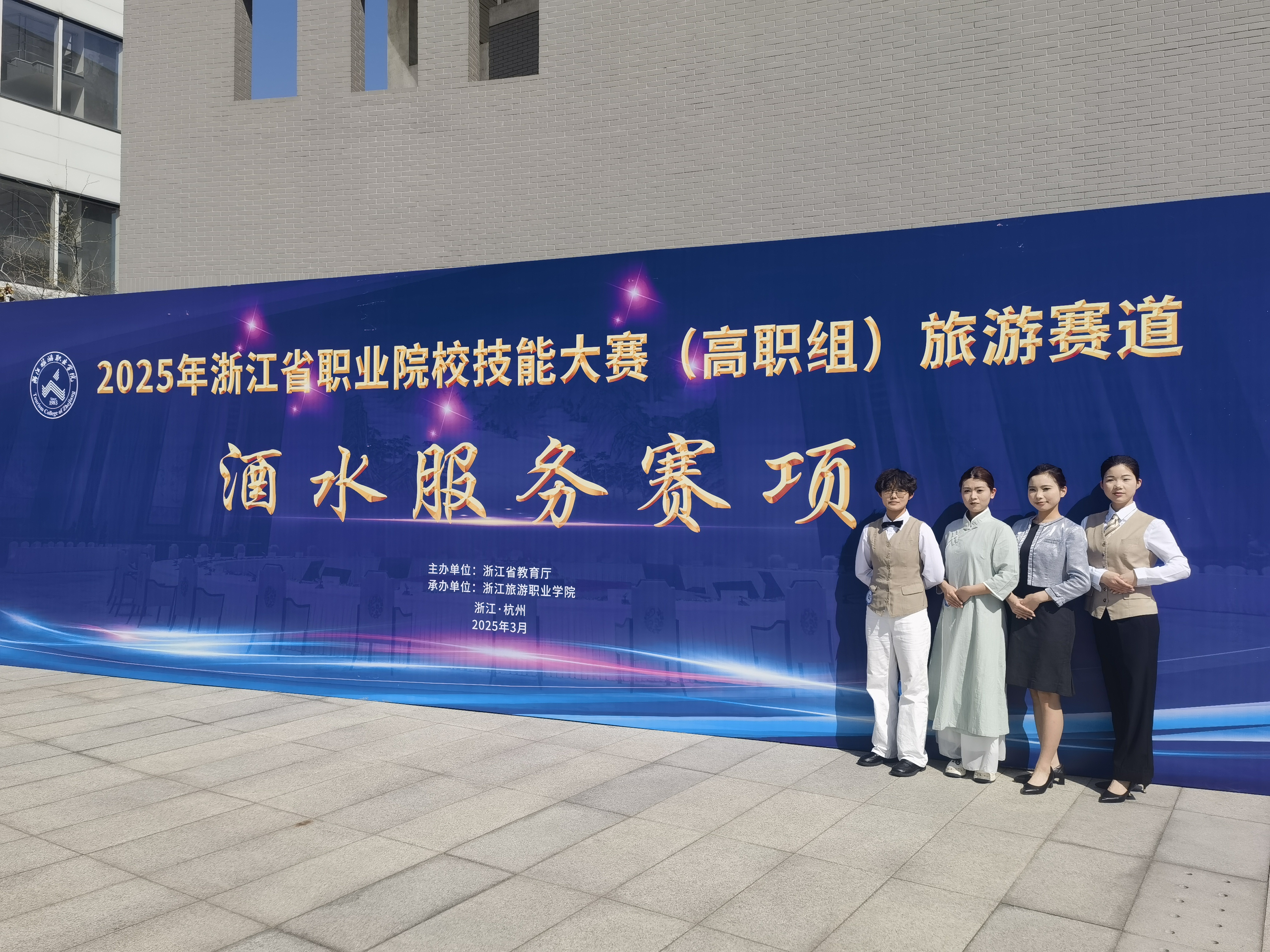2025年3月24日,由浙江省教育厅主办,浙江旅游职业学院承办的2025年浙江省职业院校技能大赛高职组“酒水服务”赛项在浙江旅游职业学院拉开帷幕。来自省内16所高职院校29支队伍参与。经过激烈的角逐,我院酒店管理与数字化运营专业茶酒交响队斩获铜奖。