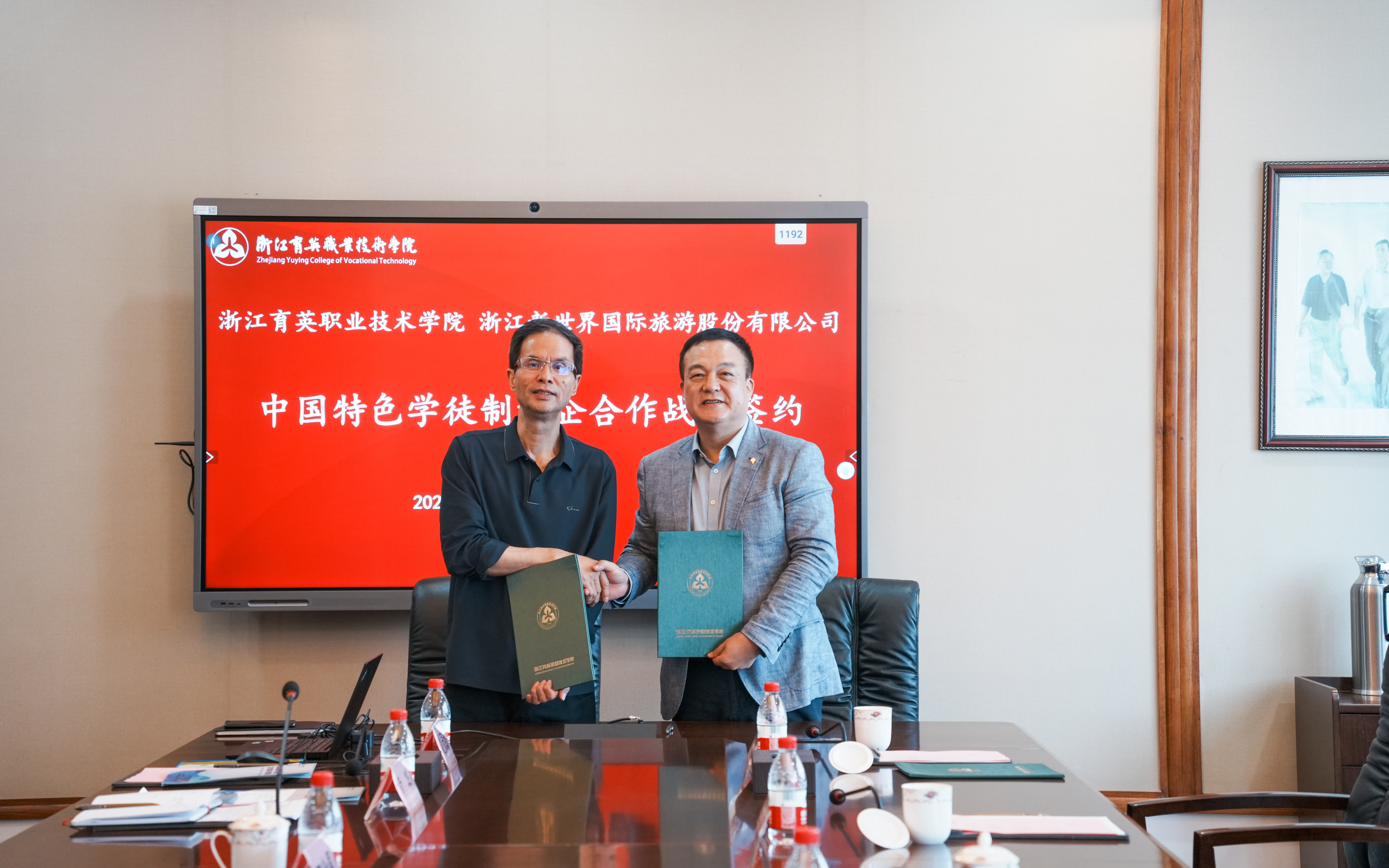 5月17日,浙江育英职业技术学院与浙江新世界国际旅游股份有限公司、杭州市西湖游船有限公司“中国特色学徒制”校企合作战略签约在学校九楼会议室举行。