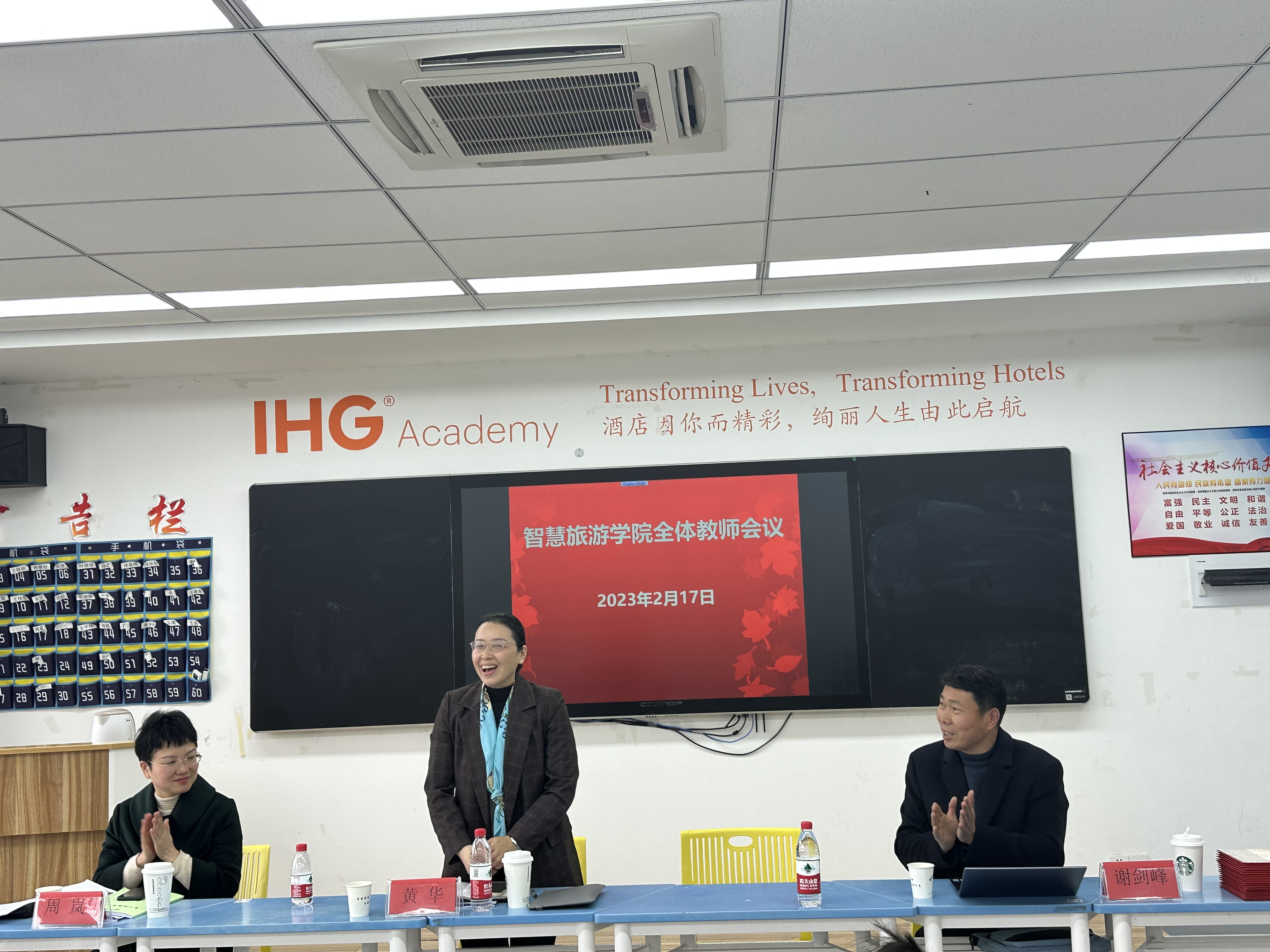2023年2月17日11:30分,星空彩票体育app平台在1303A一体化教室召开了2022-2023学年第二学期第一次全体教师大会。学院党总支书记、院长黄华老师,党总支副书记、副院长谢剑峰老师,副院长周岚老师及全体星空彩票体育app平台教师参加,会议由副院长谢剑峰主持。