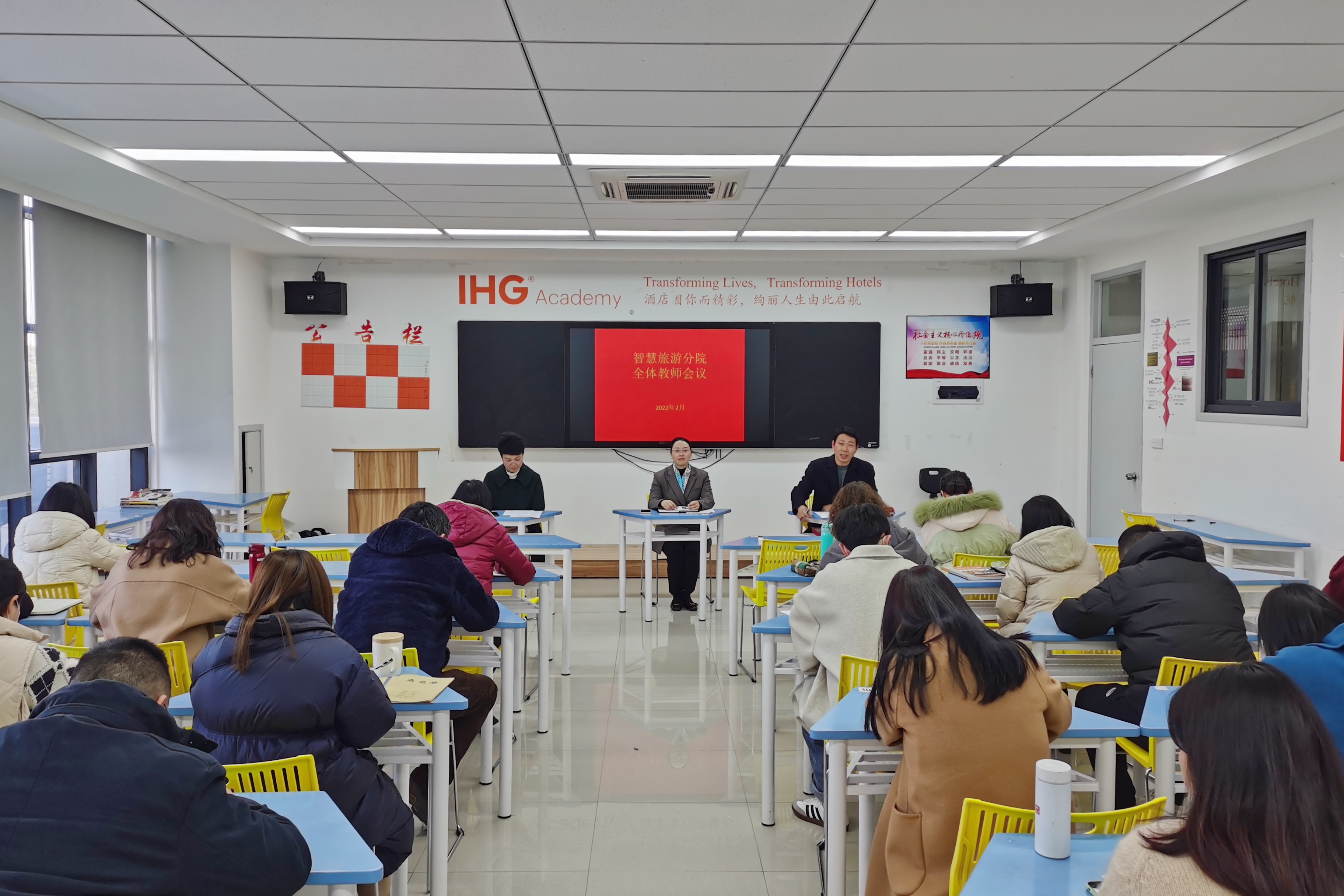为了学习贯彻落实近期学院上级各会议精神,2022年2月26日下午一点,智慧旅游分院在教学楼1303A召开了新学期第一次全体教师大会。分院黄华院长、谢剑峰书记、周岚副院长和全体教师出席会议,会议由谢剑峰书记主持。
