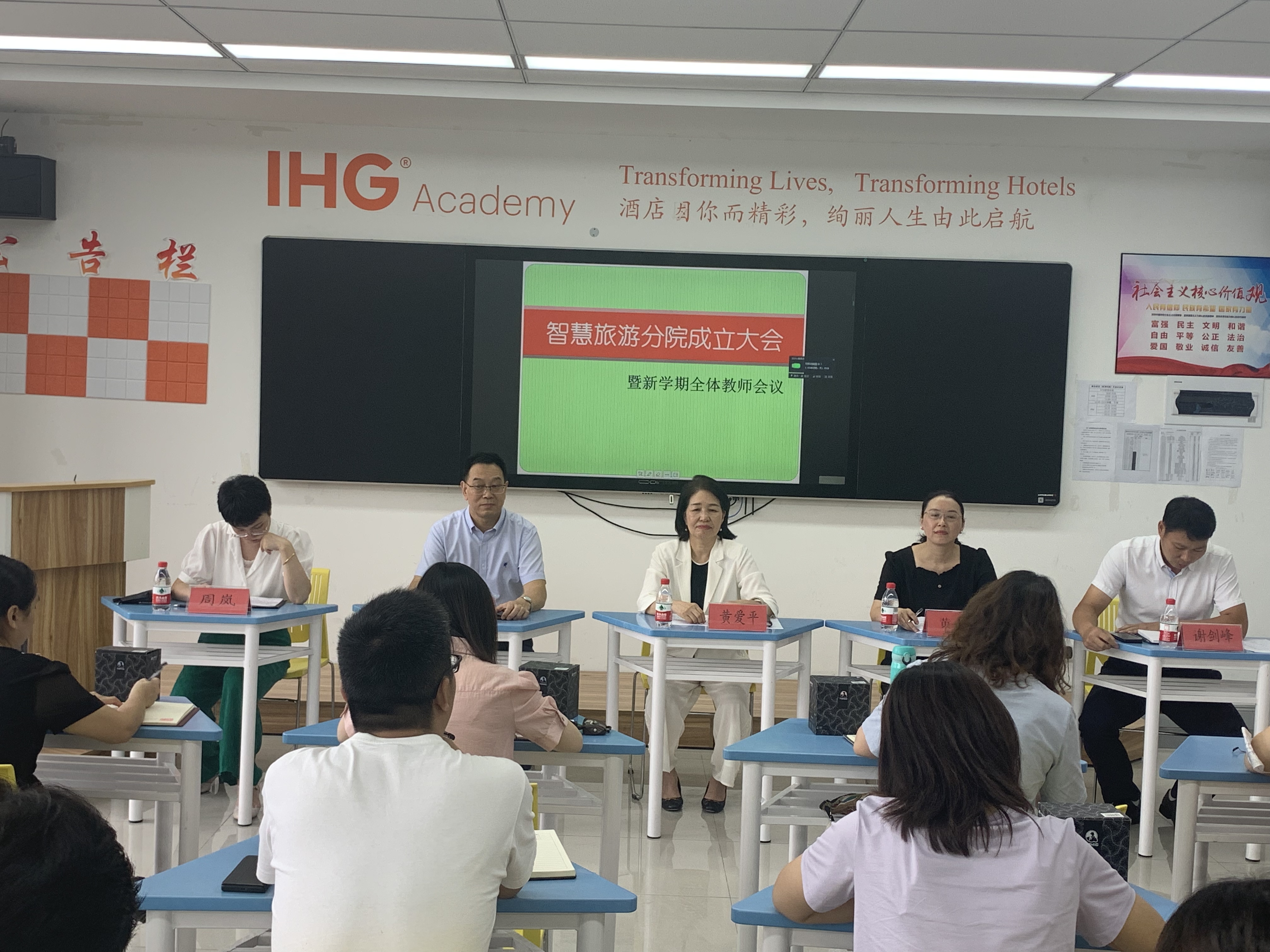2021年9月4日下午两点,智慧旅游分院在教学楼1303A召开了分院召开新学期第一次全体教师大会。学院执行院长黄爱平莅临分院并作了重要讲话。原经管分院谢厚华院长,现智慧旅游分院黄华院长、谢剑峰书记、周岚副院长和分院全体教师出席大会,会议由分院谢剑峰书记主持。