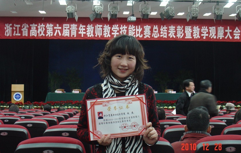 在历届浙江育英职业技术学院青年教师教学技能比赛中,涌现了众多师德高尚、技能过硬的教学能手,其中,经贸系的赵燕就两次获得一等奖。经学院推荐,赵燕老师参加了浙江省高等学校第六届青年教师教学技能比赛,并获得了优秀奖。赵燕老师深知课堂效率是决定学生学习成绩最关键的一环,所以每次上课都精心构思、认真备课。如:开场白如何才能迅速抓住学生的眼球?结束语又怎样才能达到余音绕梁、三日不散的效果?她上课从不看稿,也绝不照着幻灯念,却能滔滔不绝、旁征博引。看似张口就来,随心所欲,实则一招一式、一言一语都是精心设计、反复推敲。台上三分钟,台下十年功!就是这十年如一日的坚持成就了她的名师之梦。“学高为师、德高为范”,她深知要想为人师表,必先修身养性,做到“三尺讲台、两袖清风、一身正气”。