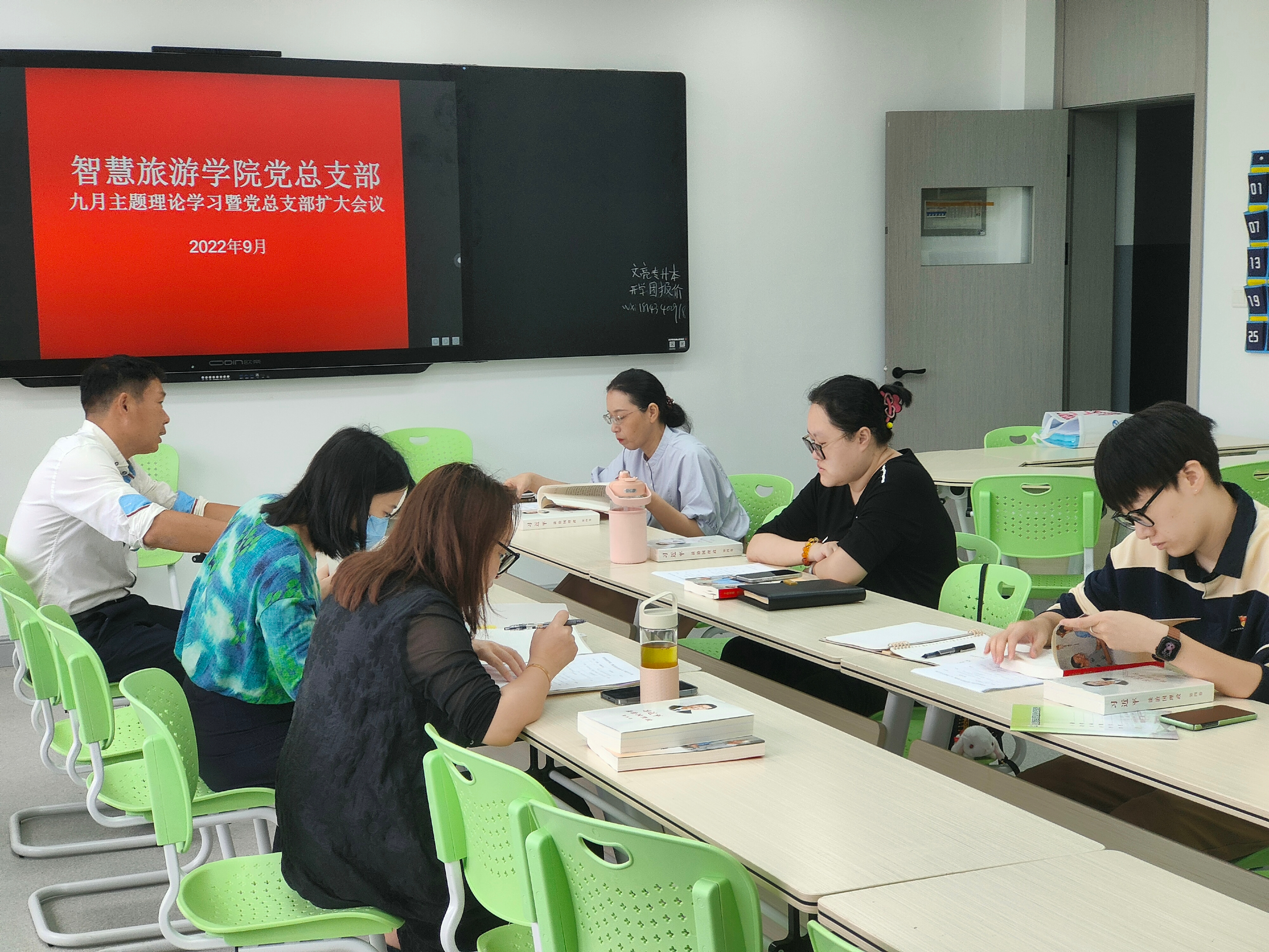 9月14日上午,星空彩票体育app平台党总支专题学习习近平总书记在省部级主要领导干部“学习习近平总书记重要讲话精神,迎接党的二十大”专题研讨班上的重要讲话精神和《干在实处、勇立潮头——习近平浙江足迹》一书,结合2022-2023学年党政工作要点和旅游学院工作进行研讨交流,明确贯彻落实举措,以实际行动迎接党的二十大胜利召开。学院党总支部委员和支部书记出席会议,学院党总支副书记谢剑峰同志主持会议。