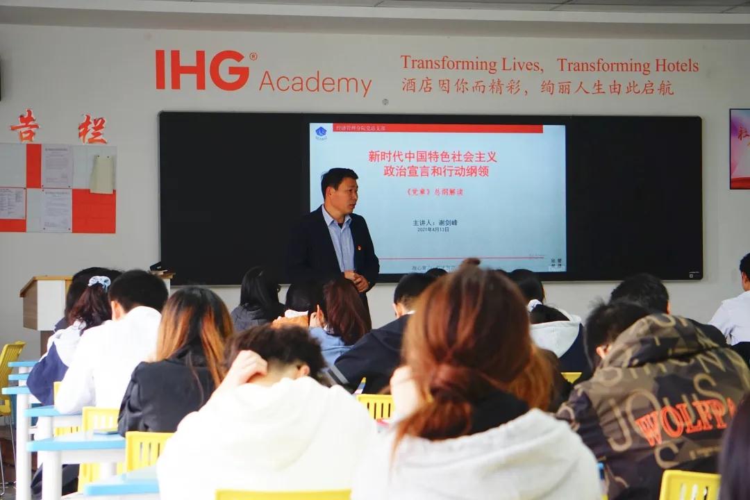 2021年4月13号中午12点30分,经济管理分院第四十四期党校第二次课程在1303A教室召开,本次课程的主讲人是经管分院党总支部书记谢剑峰老师。