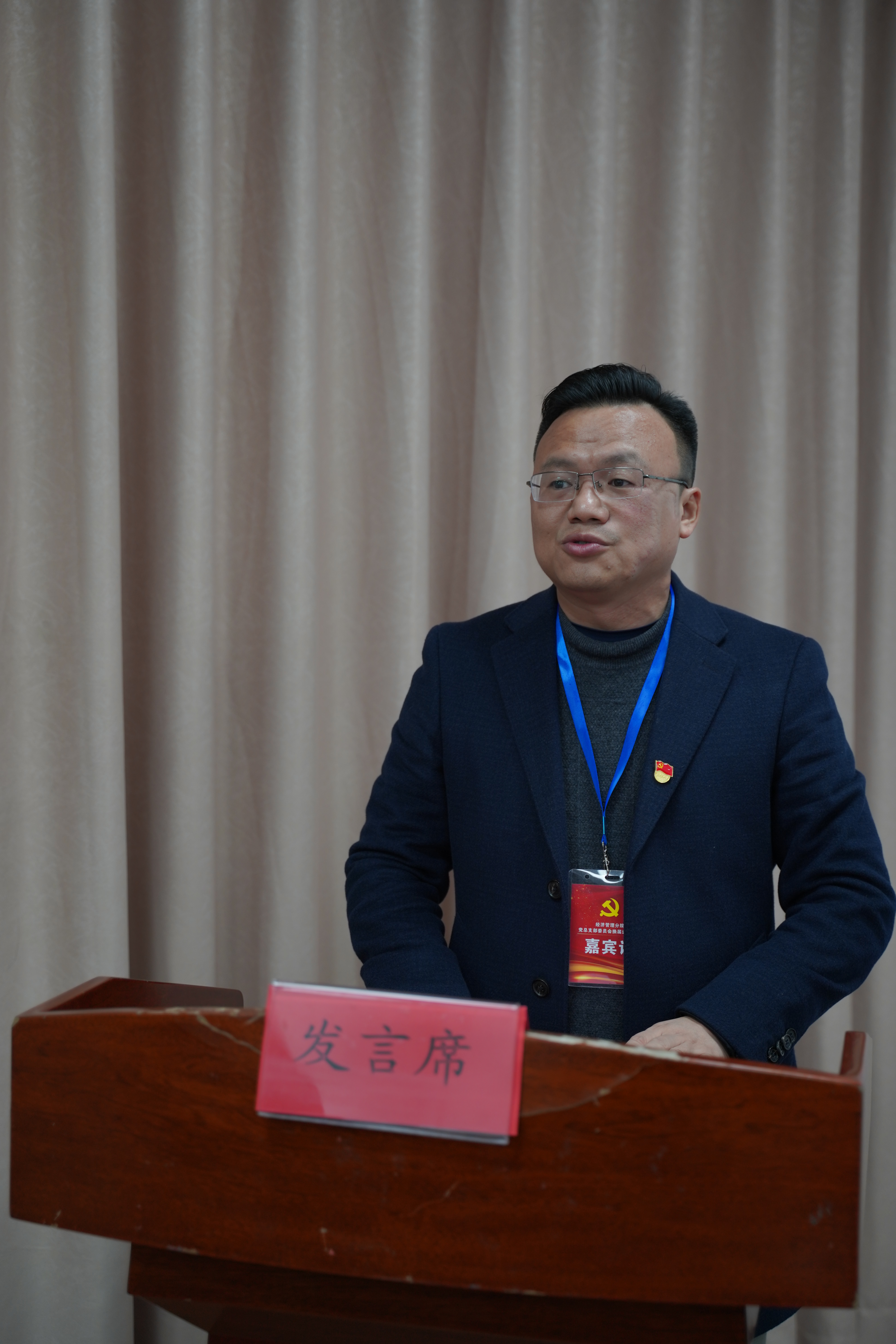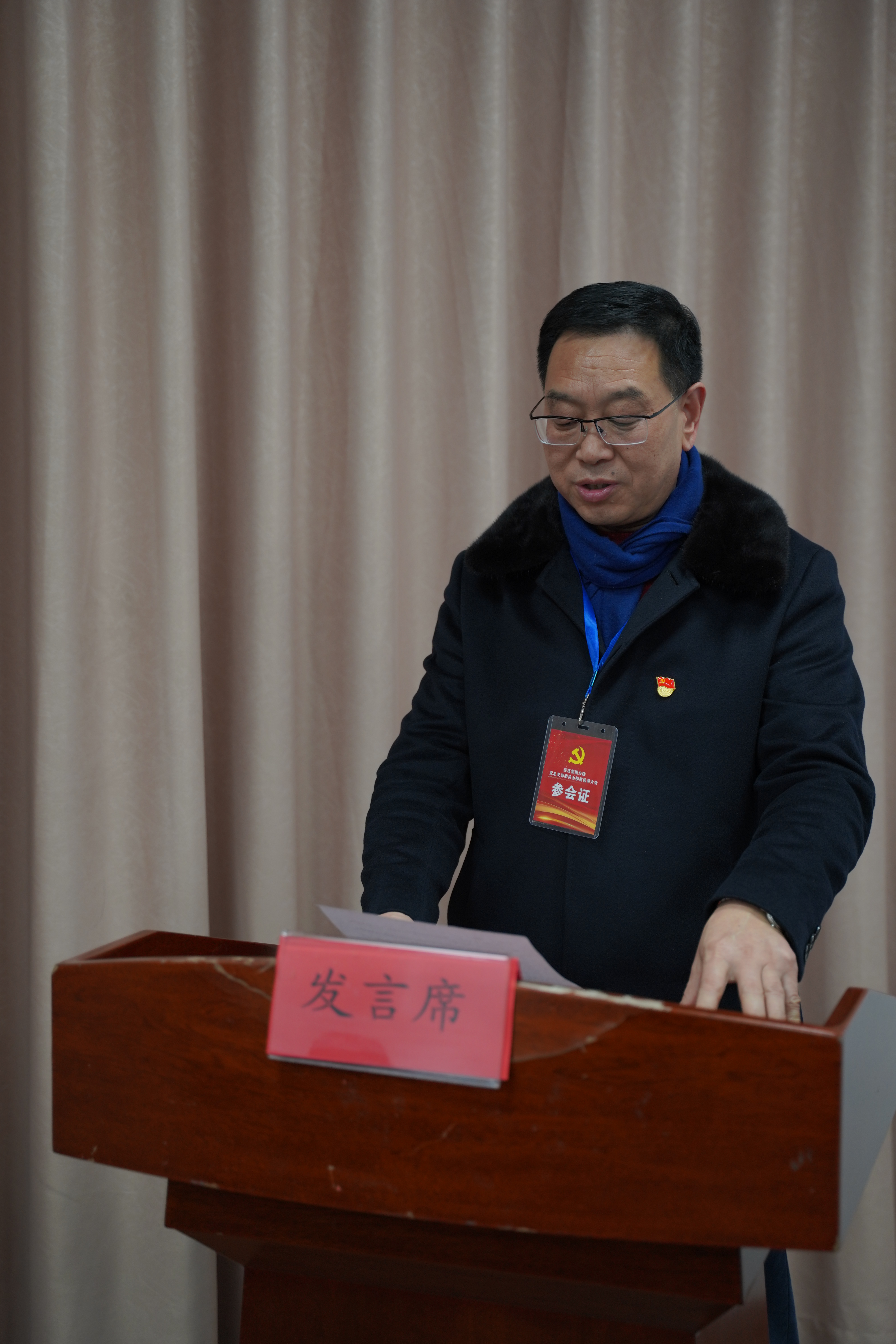 学院党委委员、纪委书记代表学院党委发表讲话,对经管分院党总支部委员会换届选举大会的召开表示祝贺,并高度评价了分院党组织发挥的重要作用和党建工作所取得的成绩。他提到,过去的五年,对于经济管理分院来说,是改革进取的五年,是勇于探索的五年,是深化专业建设的五年,是硕果累累的五年。分院经历了专业重新组合、课程重新设置、人员全面调整等新的变化,分院党总支在学院党委的领导和关心下,积极工作,勇于创新,带领分院党员干部和广大师生努力拼搏,从“维稳”到“夯实”,再到“创新”,取得了令人瞩目的成绩,涌现了一大批值得全校师生学习的榜样和楷模。面对新的发展形势和工作要求,他对新一届党总支部委员会班子提出“三个要”,要抓学习,打开视野,补精神之钙;要讲责任,凝聚人心,为师生办实事;要敢担当,做好表率,扬清新之风。希望全体经管党员师生,在未来的五年里,扎实推进党建工作,积极探索党建创新,为学院十四五期间新一轮发展贡献智慧和力量!