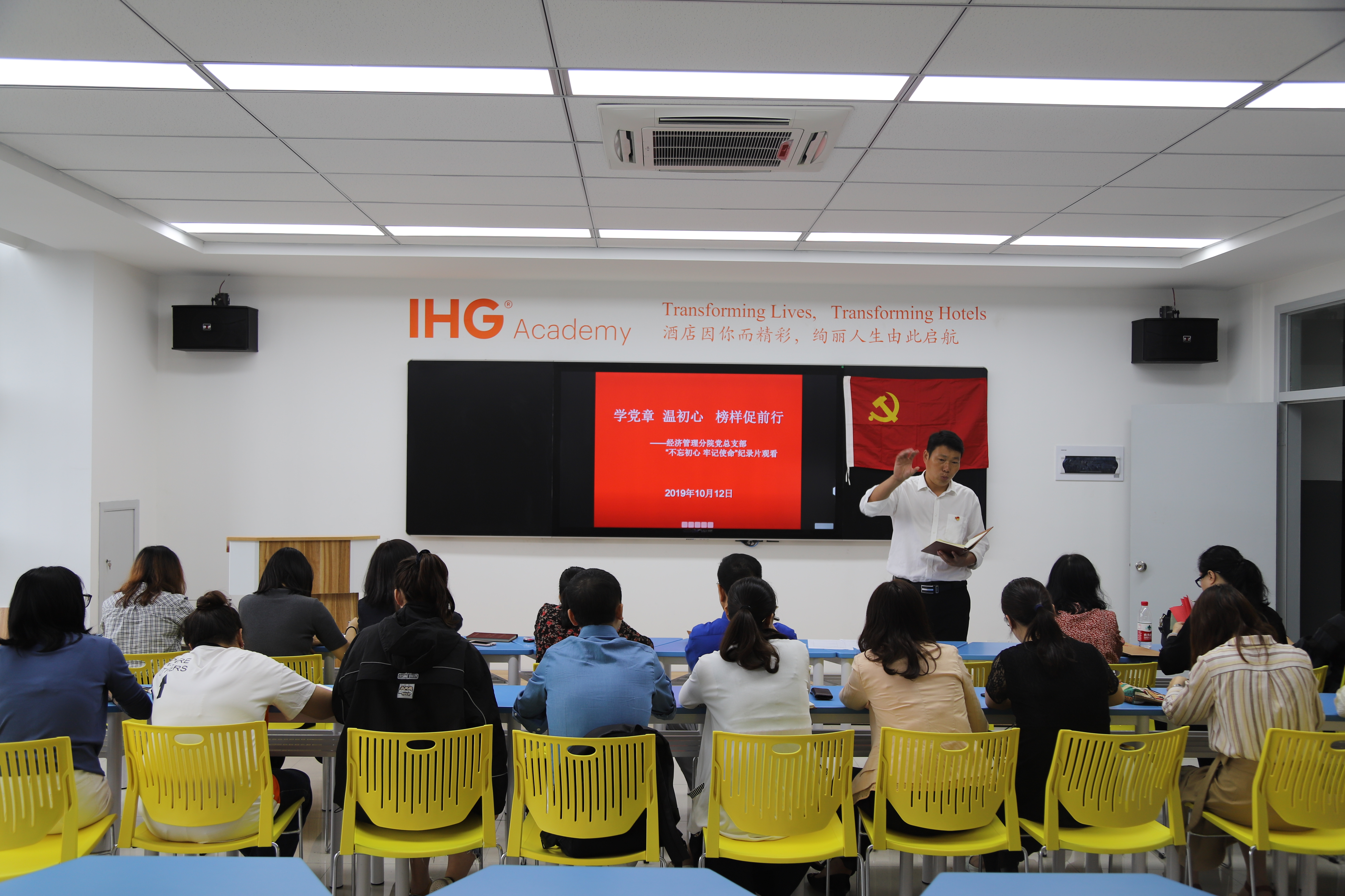 2019年10月12日,根据杭州市委主题教育办、杭州市教育局党委办公室通知要求,结合学院党委宣传部整体学习工作推进要求,分院全体教师党员在1303A召开主题教育活动,集中观看《不忘初心学党章》、《难忘初心》、《学榜样践初心》三部党员教育电视教材,本次主题活动由分院党总支部书记谢剑峰主持,首先明确了学习的目的和要求,本次电教片学习面为分院全体师生党员同志,学习内容和效果纳入到三个支部的“三会一课”、主题当日活动必学内容,同时也将作为各支部书记轮训学习的必修课,希望每一位支部书记将工作要求和目标转达到各名党员,认真执行。随后谢书记再次对本项工作做了部署,要求各支部按规定时间要求提交学习心得体会,不走形式,认真学习。