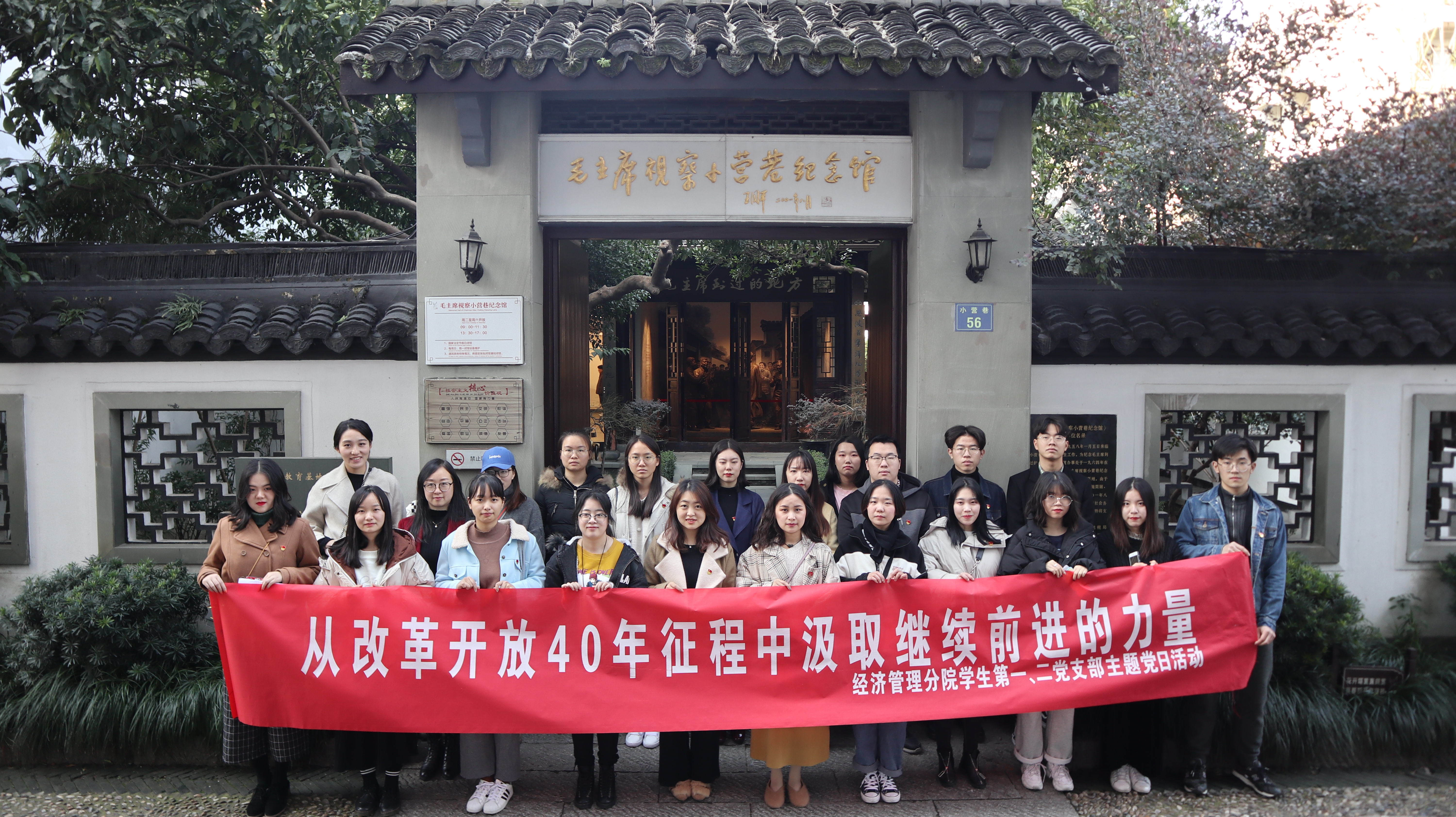 1978年12月18日,十一届三中全会在北京胜利召开,全会中心议题是讨论把全党工作重点转移到社会主义现代化建设上来。今年是我国实行改革开放40周年。这是中华民族和新中国历史上令人难忘的很不平凡的40年。中国的发展在短短40年内走过了许多发达国家两三百年所走的路,并走出了中国特色社会主义道路。这是人类历史上前所未有的奇迹。抚今追昔,我们深感中国经济社会发展的这个历史性巨变又是多么不易。为了纪念改革开放40周年,我们选择在2018年12月18日这个特别有纪念意义的日子,开展我们支部的主题党日活动,走进小营巷。小巷幽幽,风过留痕,走进小营巷,才知道这百米小巷内居然“别有洞天”。这里有珍贵的历史文化遗存毛主席到过的地方,暨毛主席视察小营巷纪念馆;这里有浙江省第一个中国共产党地方组织——中共杭州小组纪念馆;这里有钱学森故居纪念馆。这里被称为江南第一名巷——“红色小巷”。