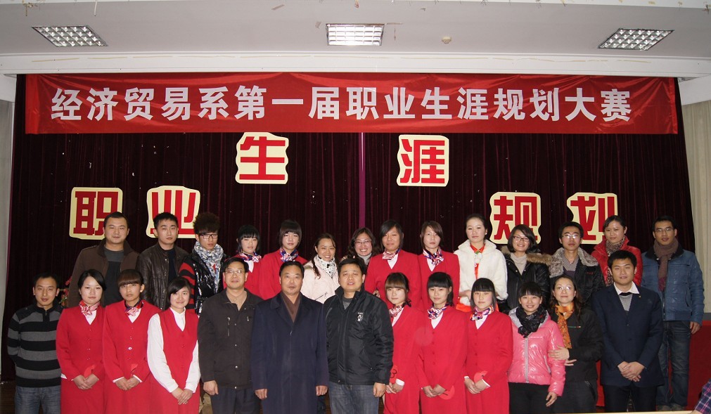 2010年12月15日晚18:40,经济贸易系在实验楼一楼报告厅开展了第一届职业生涯规划大赛。本次大赛邀请到了浙江经济职业技术就业指导办公室张穹老师、学院创业就业指导教研室主任张荣老师和经济贸易系团总支书记、德育教研室主任余国浩老师担任评委。院党委副书记副院长周治斌、经济贸易系主任谢厚华,经济贸易系党总支副书记田翔、经贸系实践、德育教研室全体教师出席了大赛。