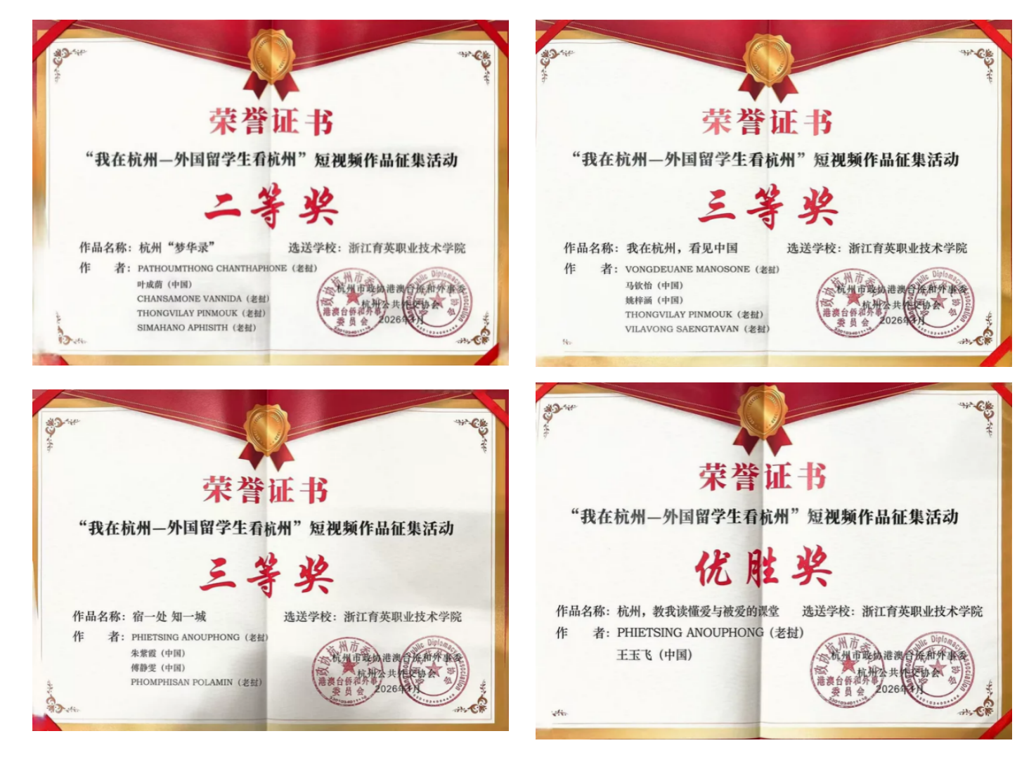1月6日,2025“我在杭州——外国留学生看杭州”短视频作品征集活动颁奖仪式在杭州市政协协商民主实践中心举行。我校选送的留学生短视频作品获二等奖1项、三等奖2项及优胜奖1项。学校成为本届赛事获奖数量最多的高校,获“优秀组织奖”。