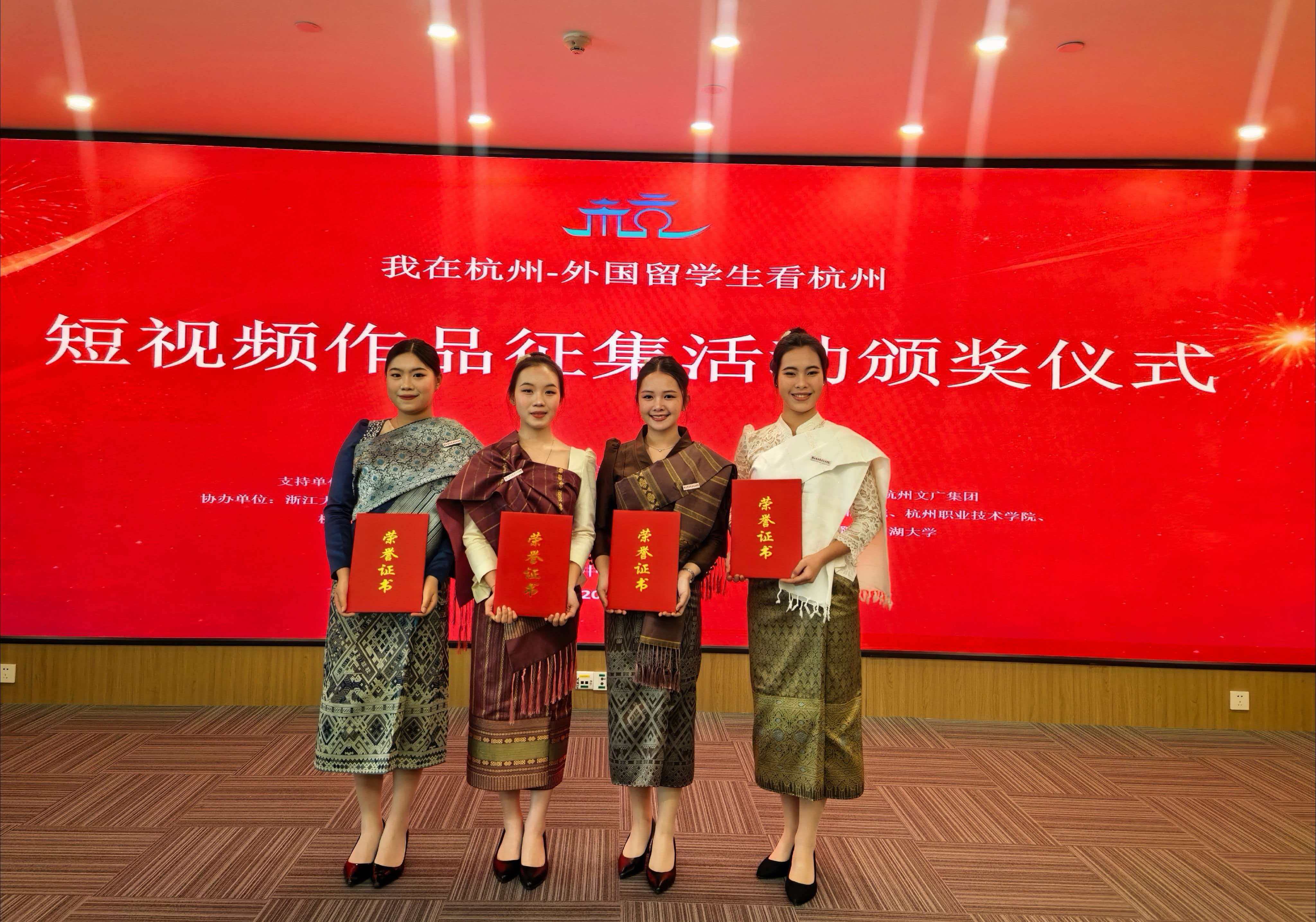 在创作过程中,我校老挝留学生们深入杭州的街巷与科创园区,用日益精进的汉语表达和数字技能,将西湖的山水、城市的脉动转化为动人影像。他们不仅用镜头语言流畅叙事,更以真挚情感展现出“知华、友华、爱华”的深厚认同,让世界看到一个传统与现代交融的鲜活杭州,展示了汉语水平和专业技能。