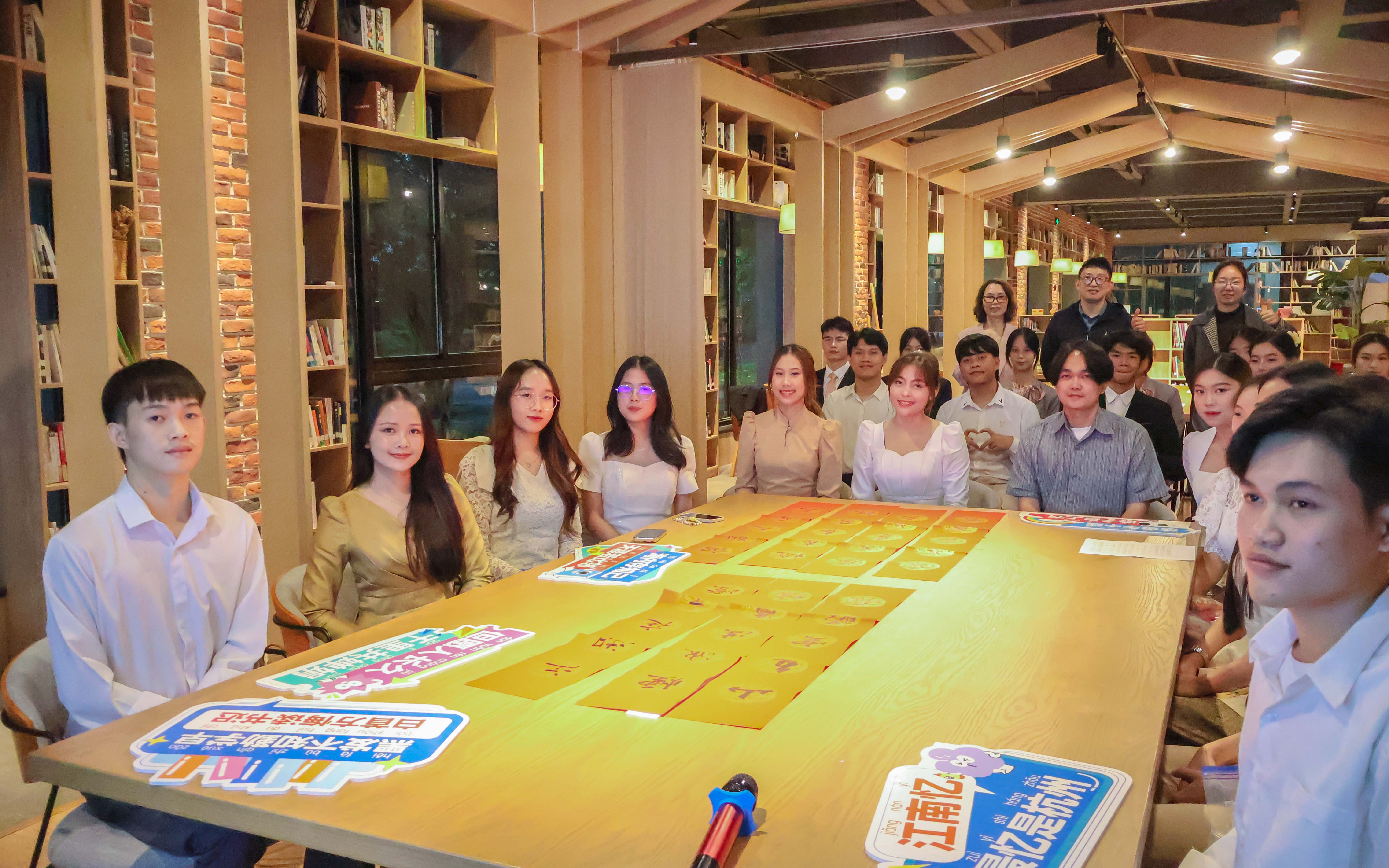 11月7日下午,星空彩票体育app平台"汉语桥"系列活动之"诗画杭州,最美育英"中国诗词分享会在书吧举办。来自老挝的留学生与6名中国学子共聚一堂,在葛秀华老师、辅导员董文老师的指导下,于星空彩票体育app平台副院长、党总支副书记张丹的引领下,开启了一场跨越国界的文化对话。