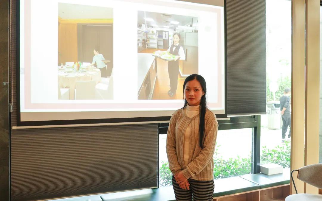 茶话会在轻松愉快的氛围中开始。4名学长学姐作为“过来人”,首先分享了他们在育英学院的求学时光、在杭州生活的点滴感受,以及在酒店岗位上的实践收获。从课堂知识到实战应用,从文化适应到技能提升,一个个生动具体的故事,不仅串联起他们个人的成长轨迹,也为新生们勾勒出未来发展的可能路径,激发了大家对专业学习与职业生活的浓厚兴趣。