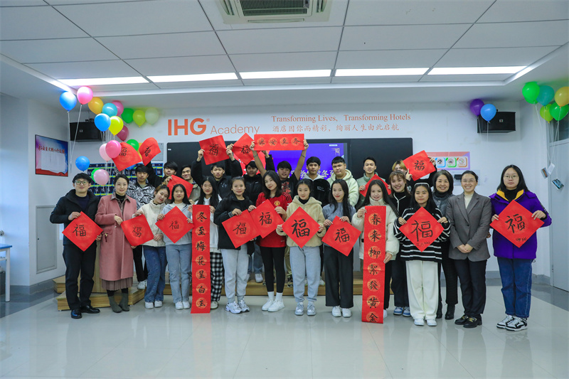 除了文化参访和民俗体验,学校还通过社团活动向老挝留学生传播中国传统文化。书法是中华民族的文化瑰宝,每当重要的节庆日都有写福、送福的风俗。在社团活动中,学校组织书法爱好者与老挝留学生一起书写“福”字。从握笔、沾墨到落笔,一笔一划勾勒中国汉字,老挝留学生在汉字书写中感悟中华文明的魅力。一张张大红字上出现了各式的“福”字,老挝留学生惊喜地拿着自己书写的“作品”拍起了照片。画脸谱、品茶香、写春联、贴福字等一系列生动有趣的活动,让老挝留学生体验了深厚的中华文化底蕴,提升了参与感、体验感和获得感。